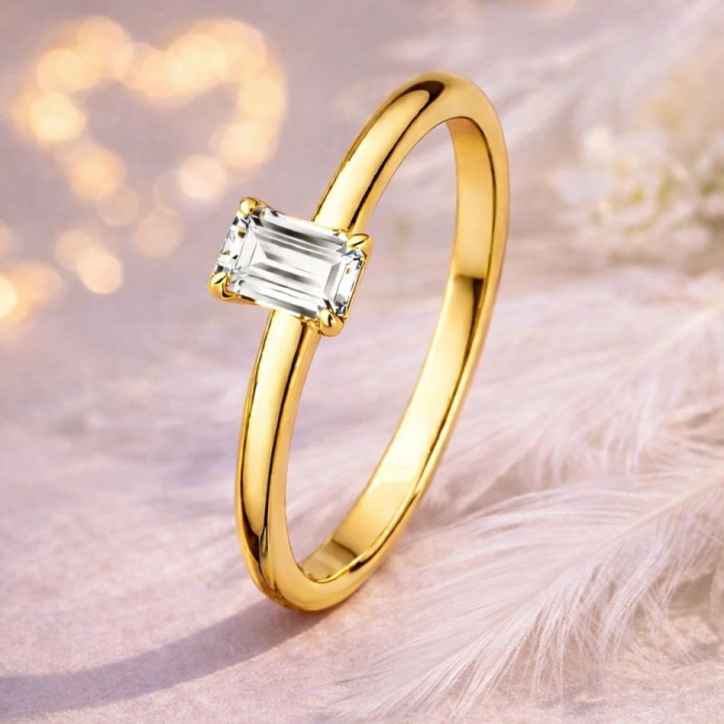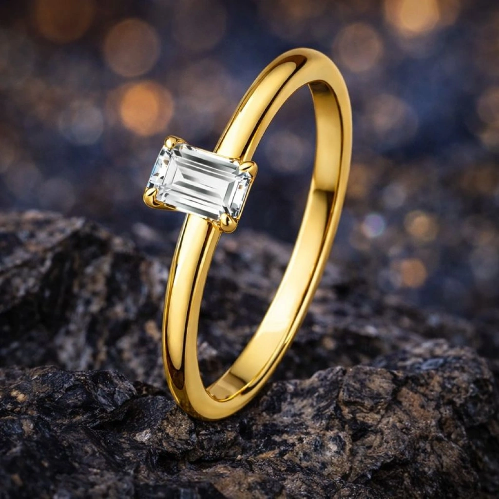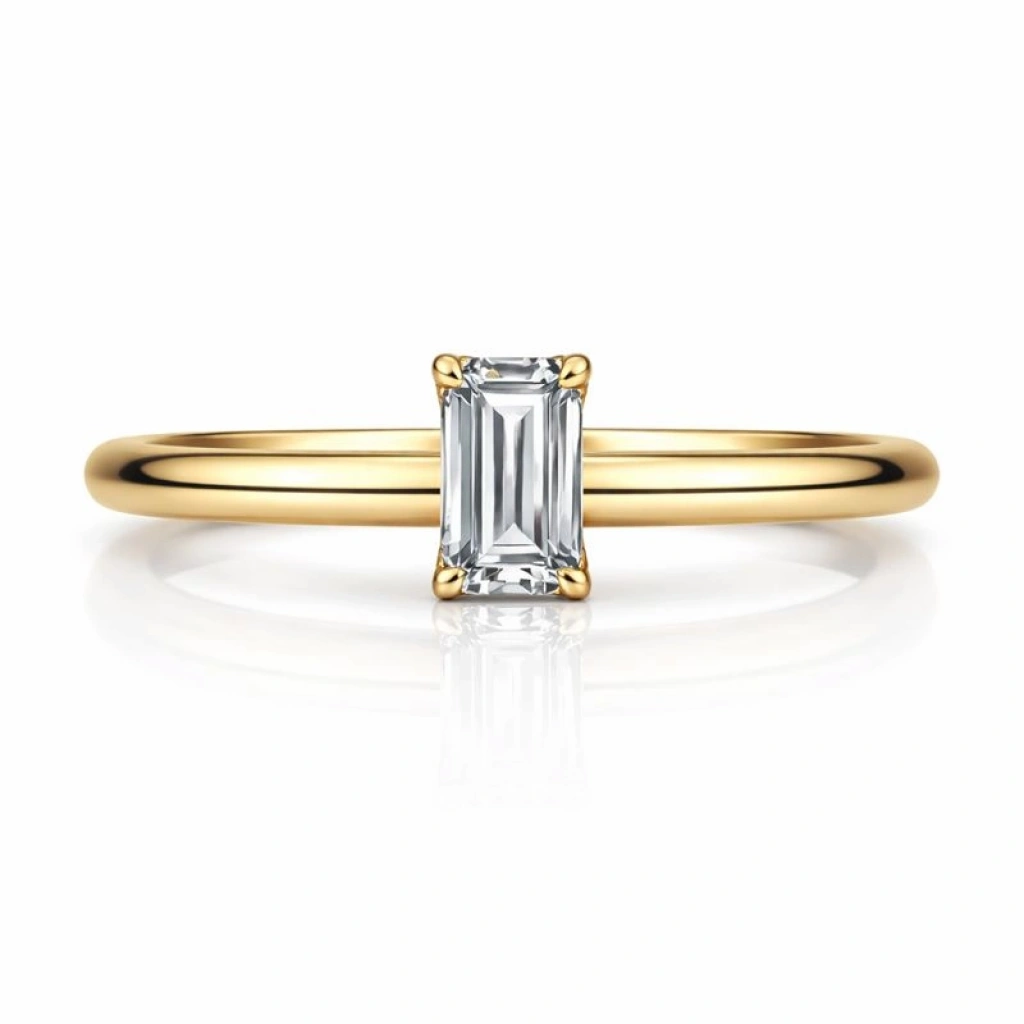 0.20 Karat Baget Kesim Tektaş Pırlanta Yüzük, Zümrüt Kesim Altın Yüzük