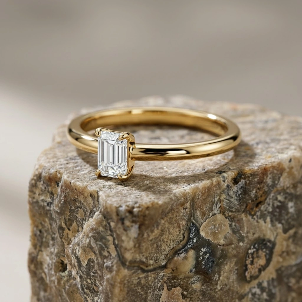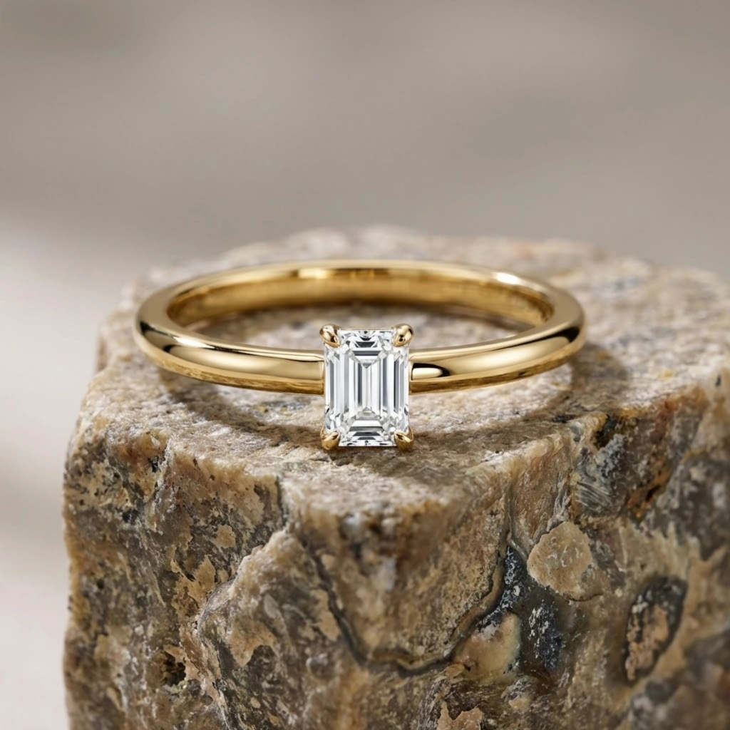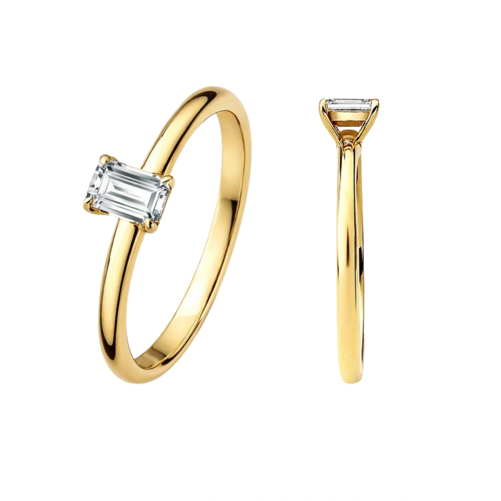 0.20 Karat Baget Kesim Tektaş Pırlanta Yüzük, Zümrüt Kesim Altın Yüzük