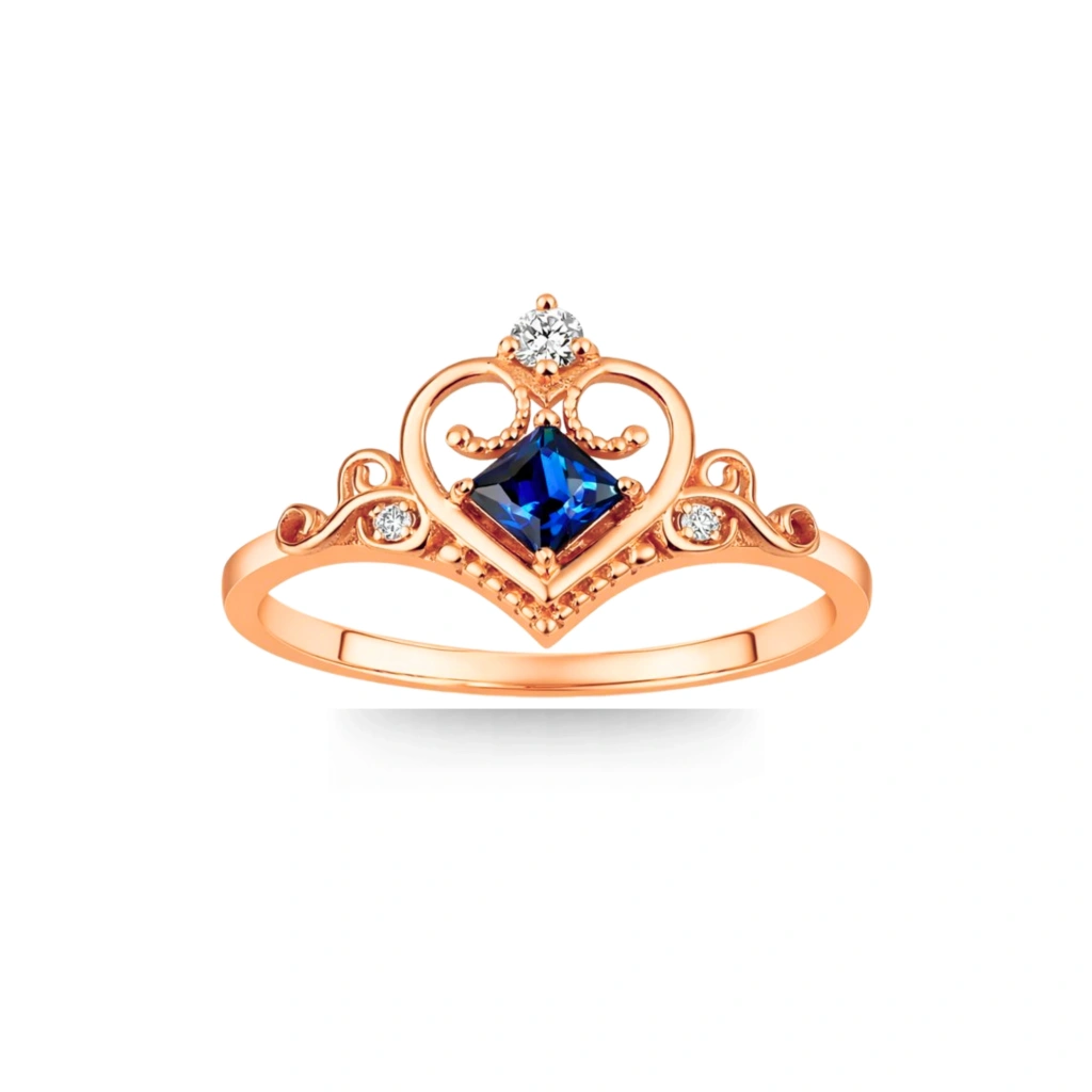 0.30 Karat Kraliçe Tacı Mavi Safir Pırlanta Yüzük