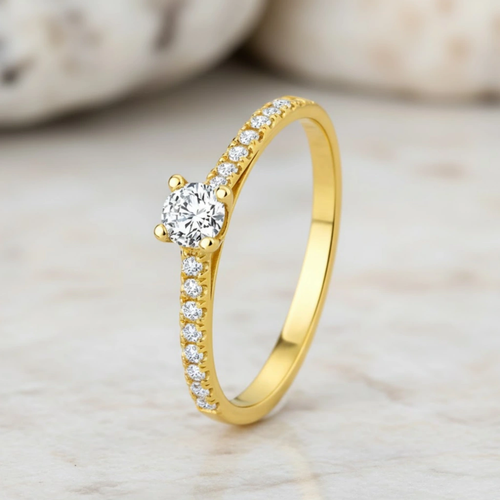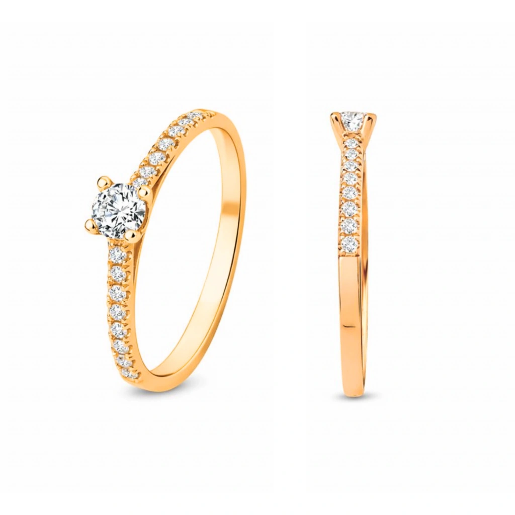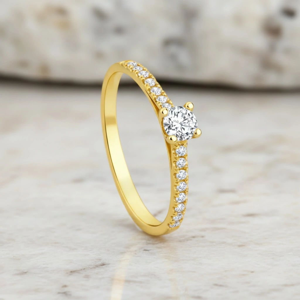 Zarif duruşu güçlü ışıltıyla birleştiren bu 14 Ayar Altın 0.30 Karat Pırlanta Yüzük, modern çizgilerle yorumlanan zamansız tektaş stilini sunar. Özenle seçilmiş pırlantaların ışığı büyüleyici şekilde yansıtmasıyla hem günlük kullanıma hem de özel anlara eşlik eder.