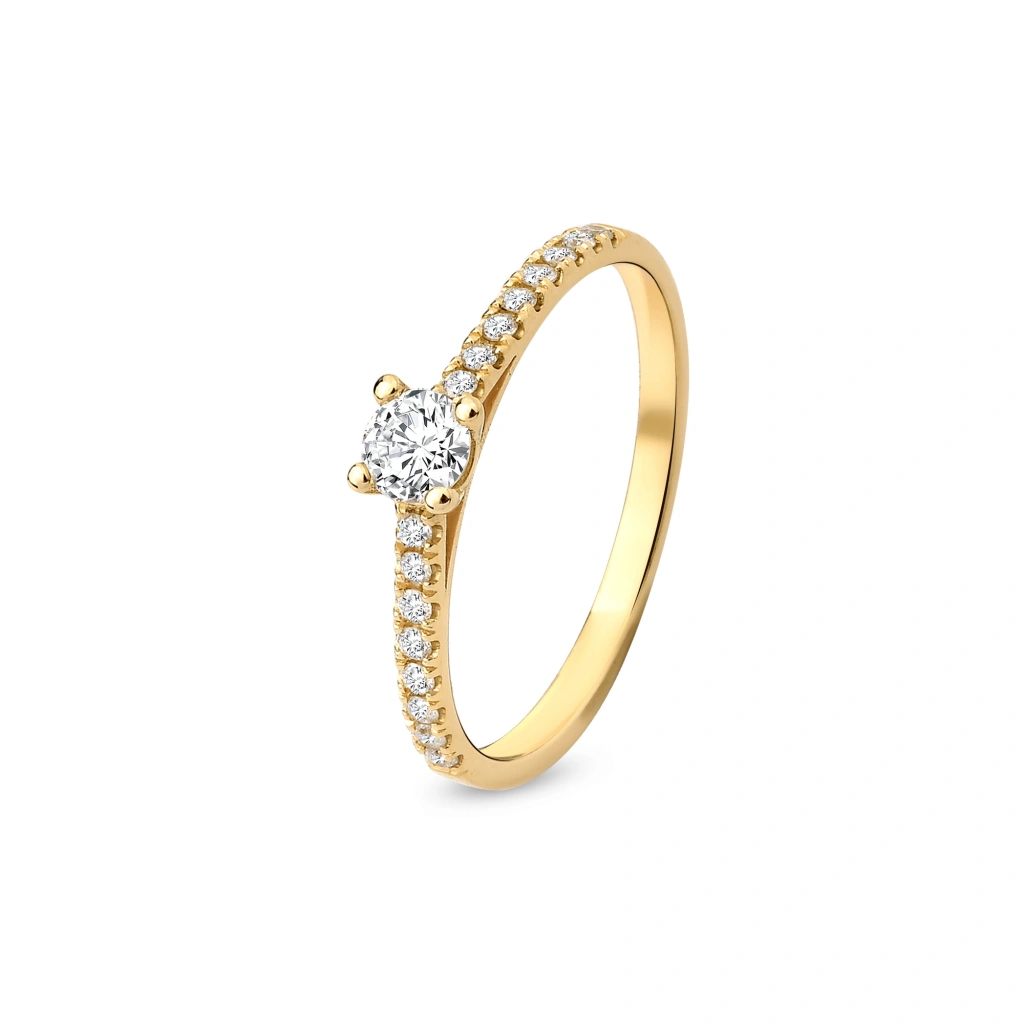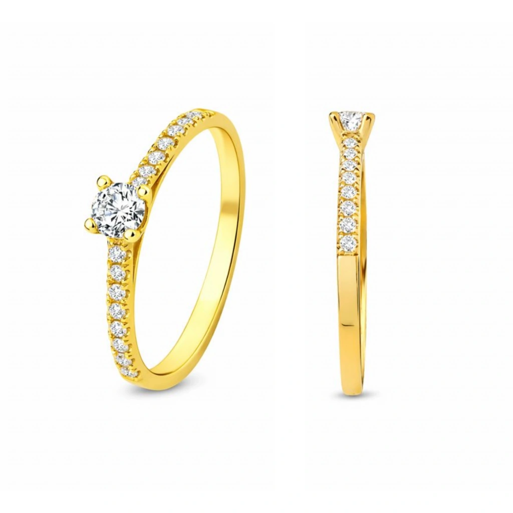 14 Ayar Altın 0.30 Karat Pırlanta Yüzük, Tektaş Altın Yüzük