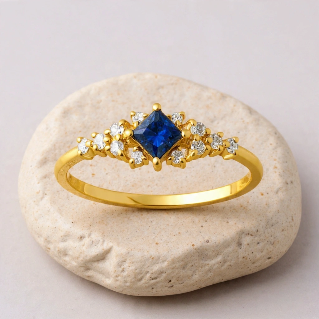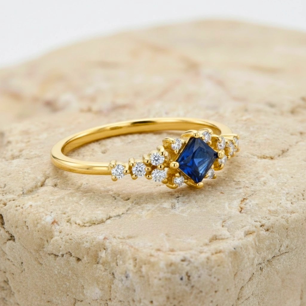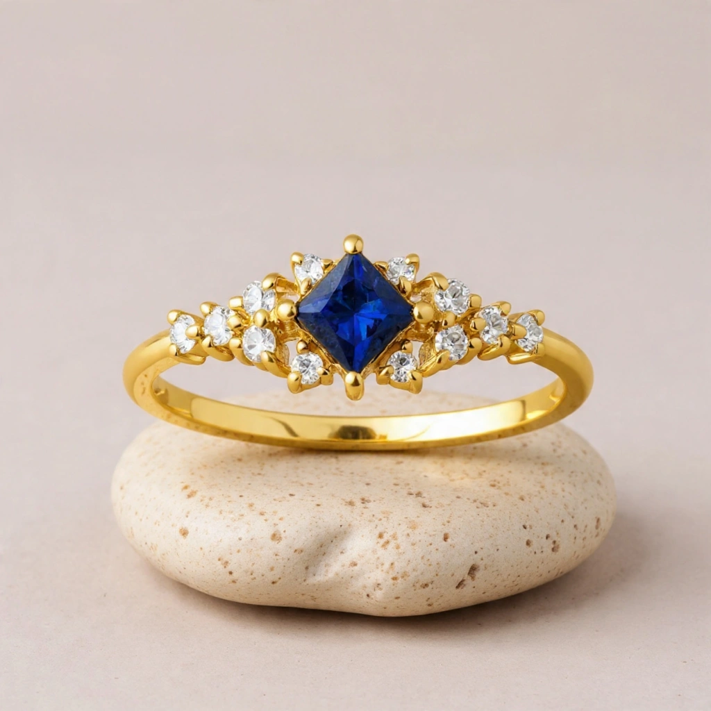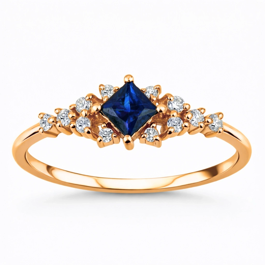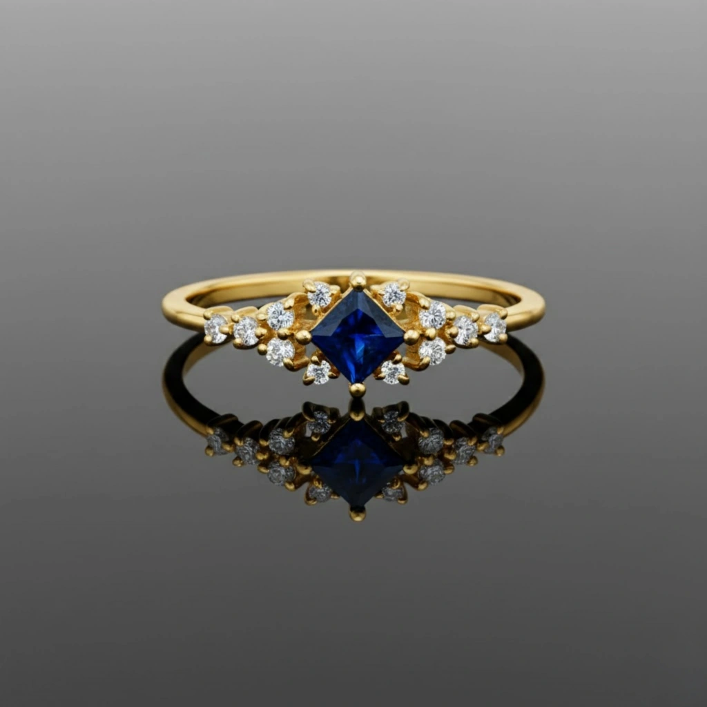 0.32 Karat Prenses Kesim Safir Pırlanta Yüzük