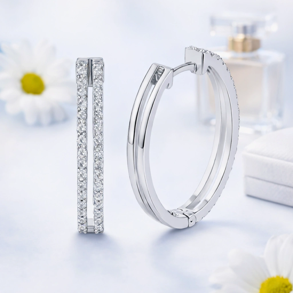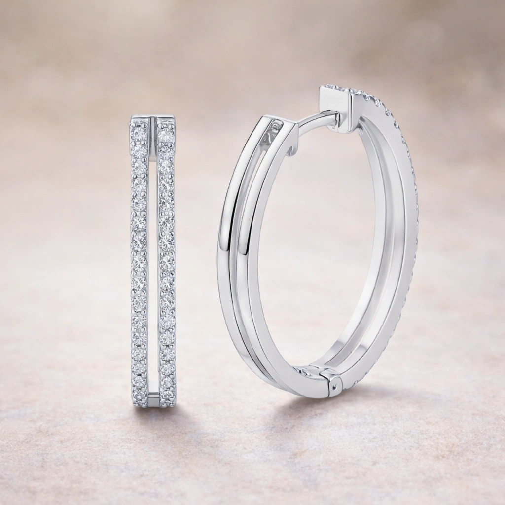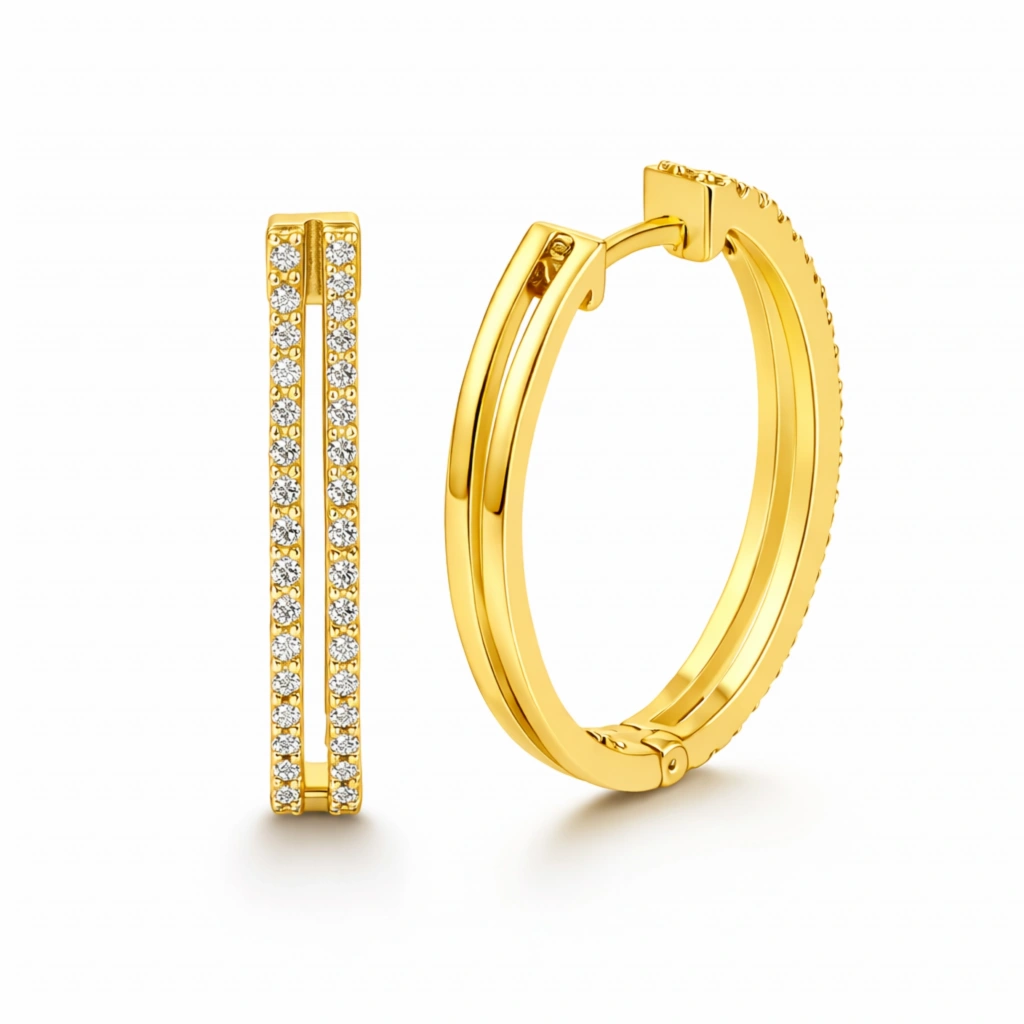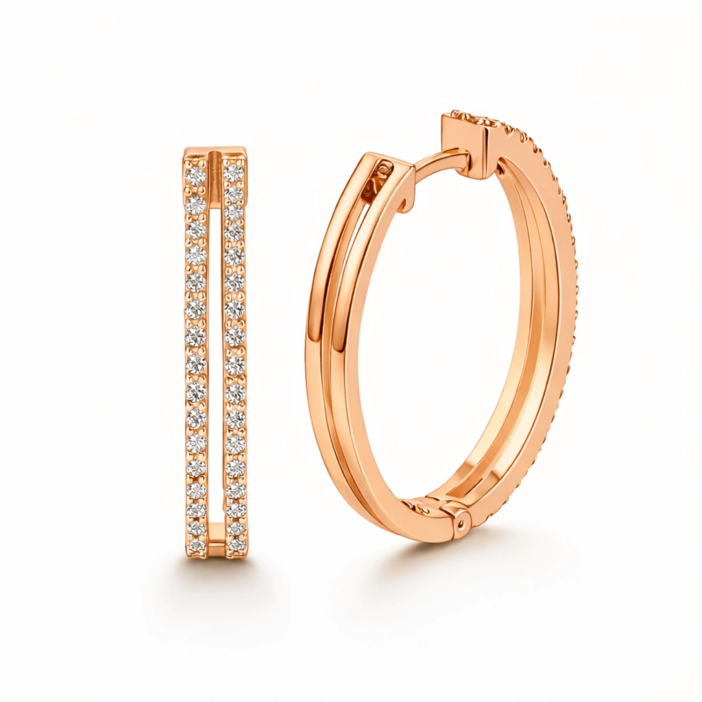 Zamansız halka formu ile tasarlanan bu pırlanta küpe, klasik şıklığı modern ışıltı ile buluşturur.