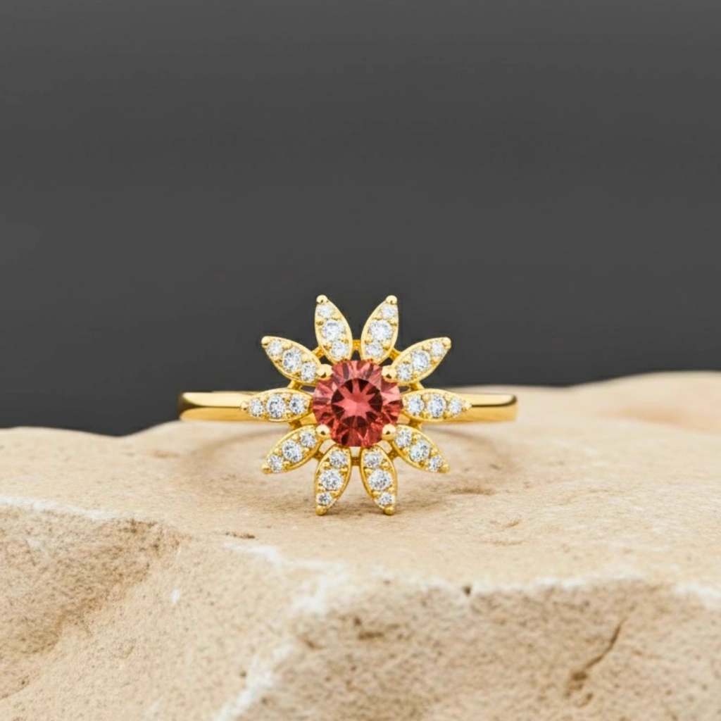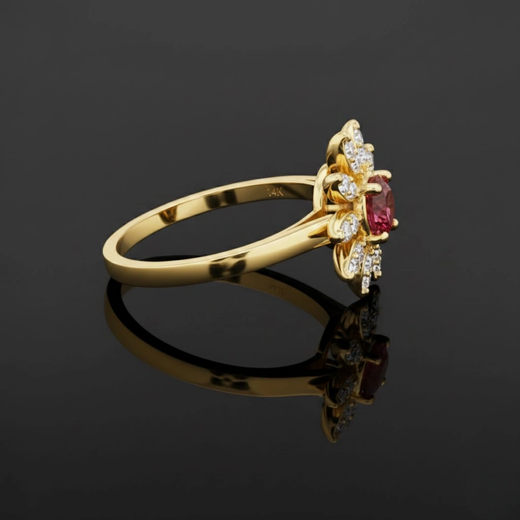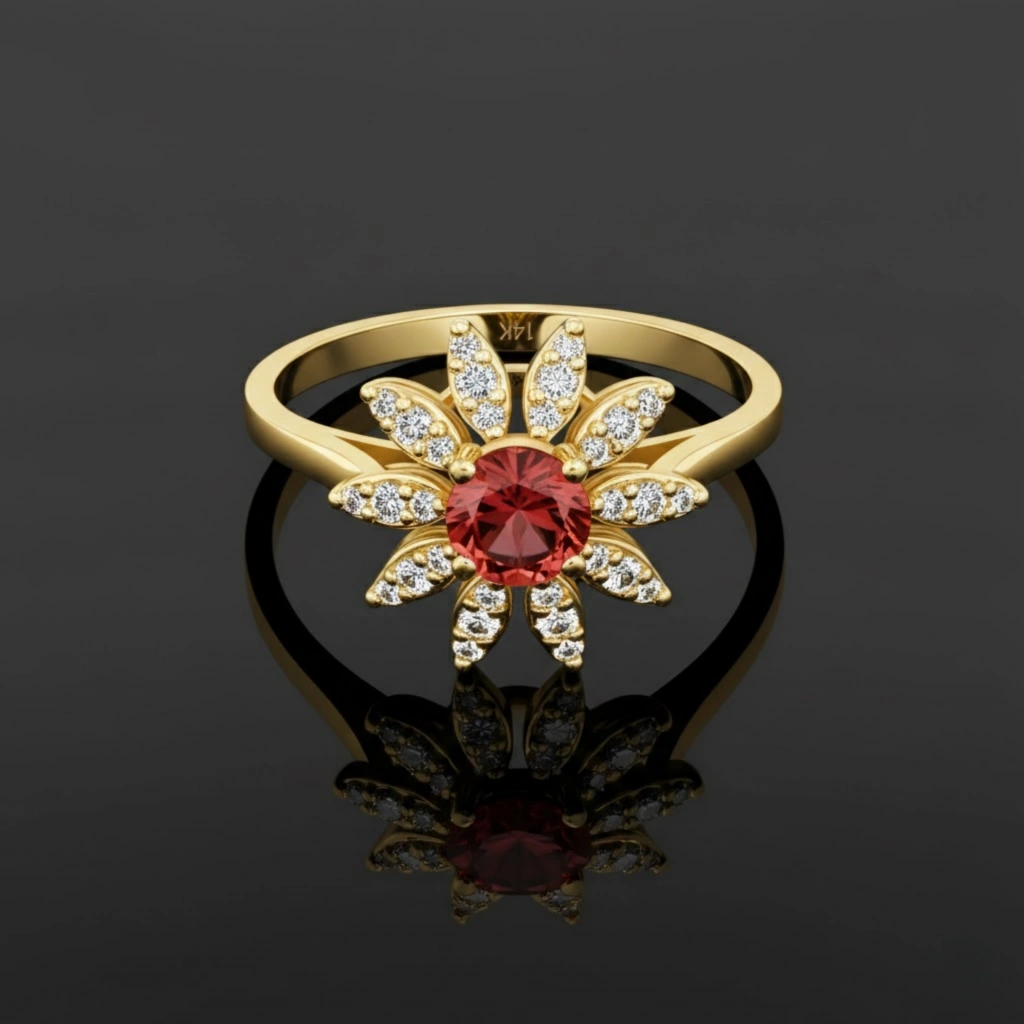 0.73 Karat Yakut Taşlı Papatya Pırlanta Yüzük