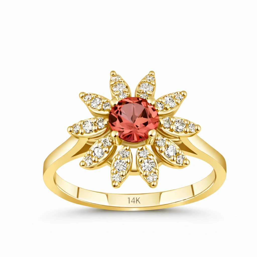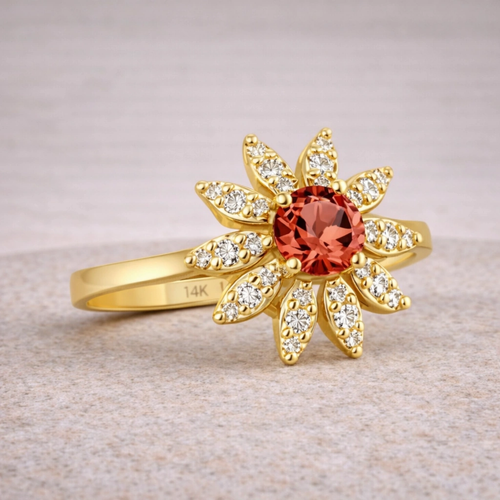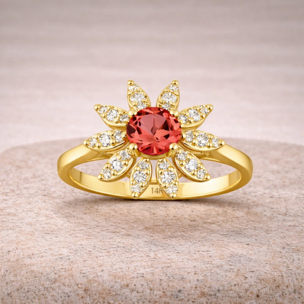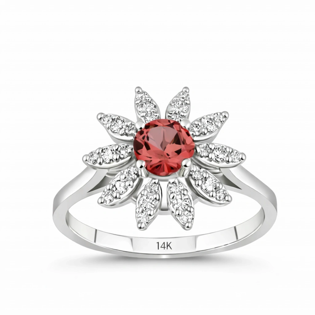 0.73 Karat Yakut Taşlı Papatya Pırlanta Yüzük