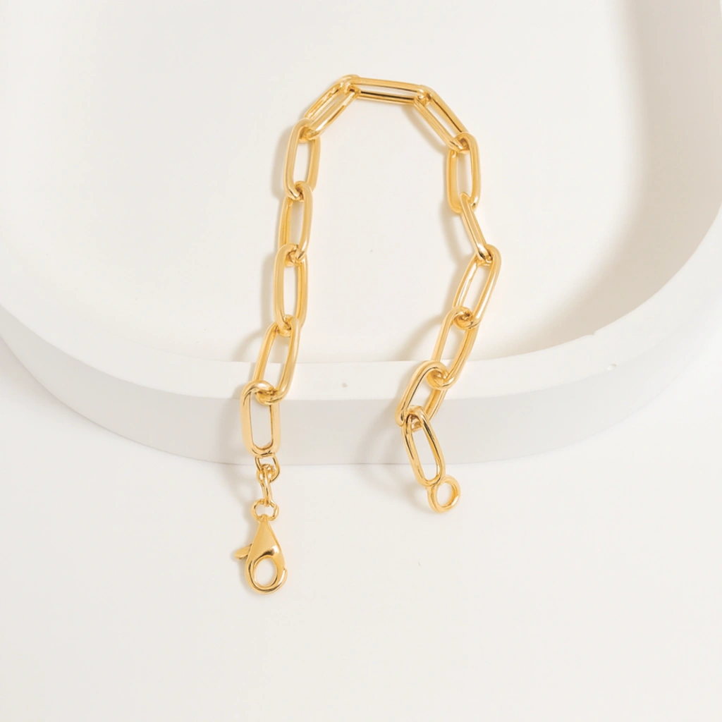 Bu şık ataç zincir bileklik, modern tasarımıyla her kombine zarif bir dokunuş katar. İnce ve minimal yapısıyla günlük kullanım veya özel günler için ideal bir aksesuardır. Her anı stil ve zarafetle taçlandıran bu bileklik, anlamlı hediyeler için de mükemmel bir tercihtir.