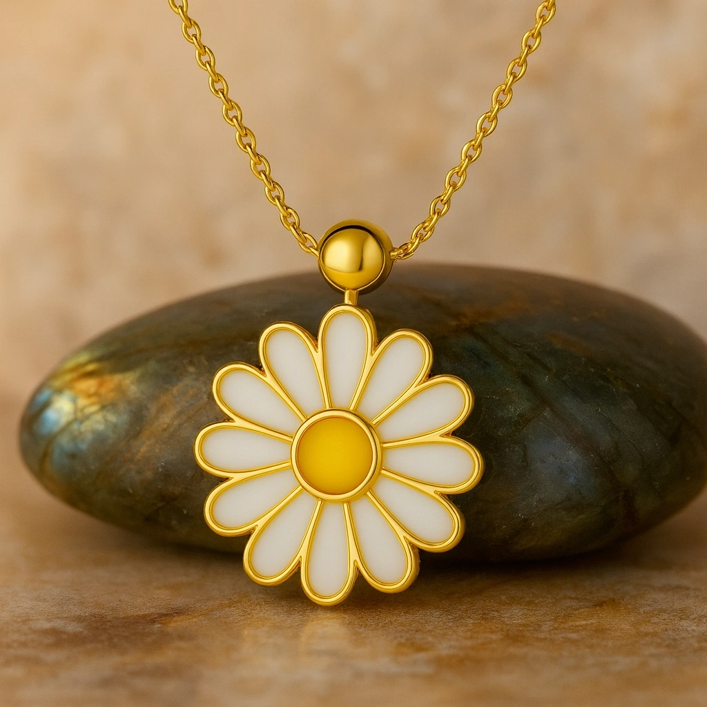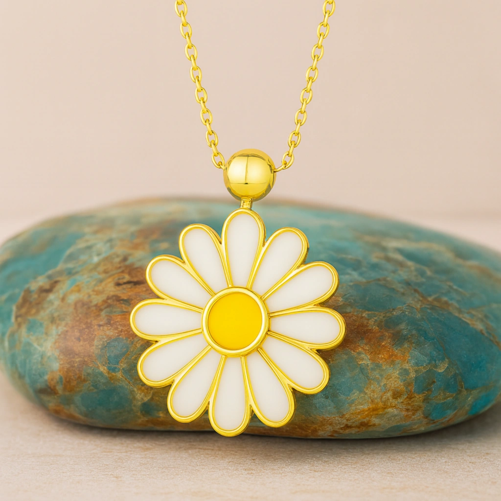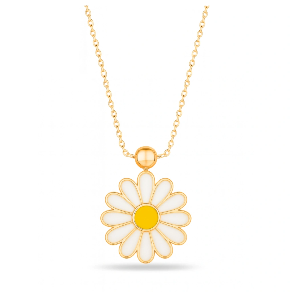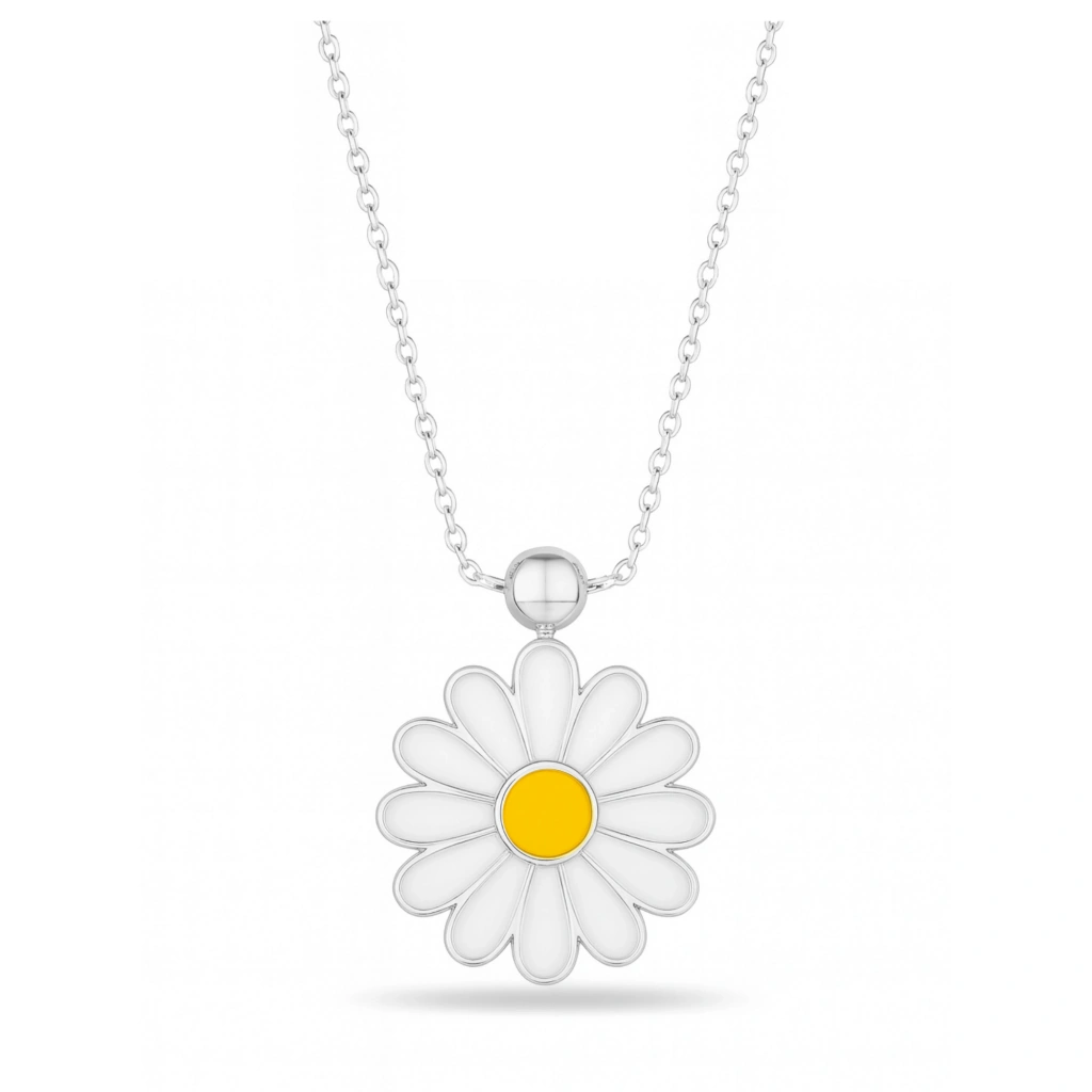 Bu zarif beyaz papatya kolye, çiçek formunun saflığını modern tasarımla buluşturur. Şık ve göz alıcı yapısıyla günlük kullanımdan özel anlara kadar her stile uyum sağlar. Her anı zarafet, saflık ve ince bir anlamla taçlandıran bu kolye, sevdiklerinize verilebilecek en özel hediyelerden biridir.