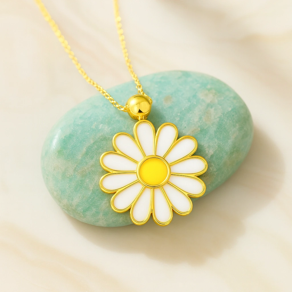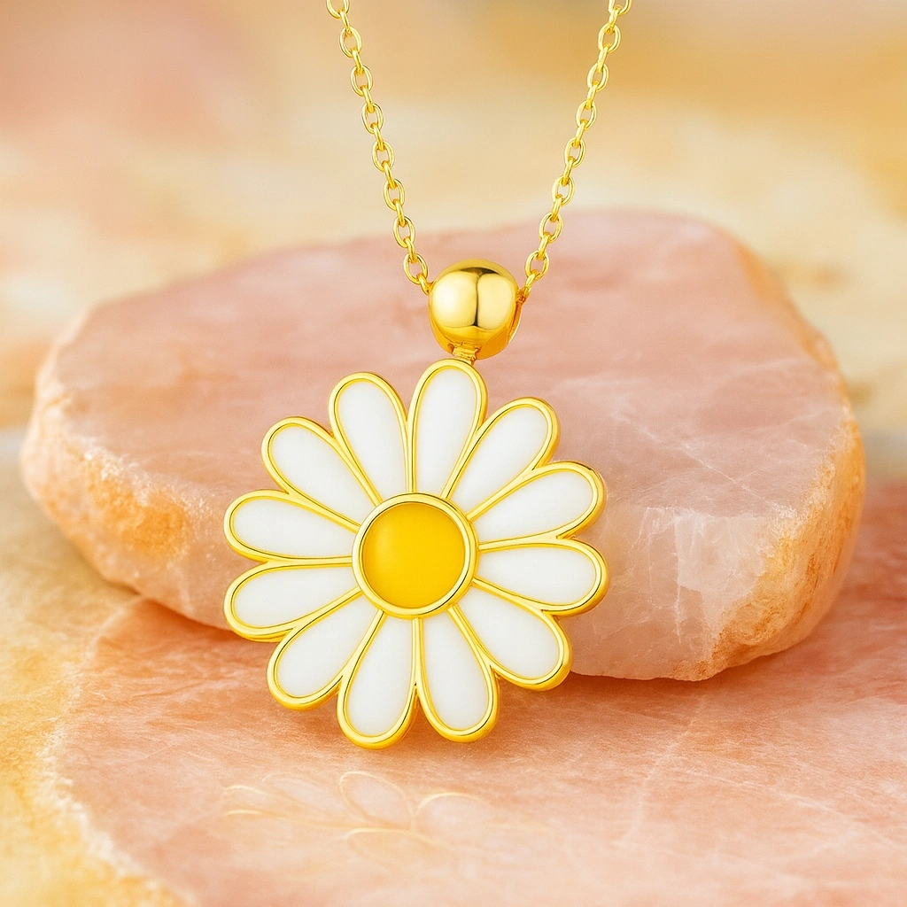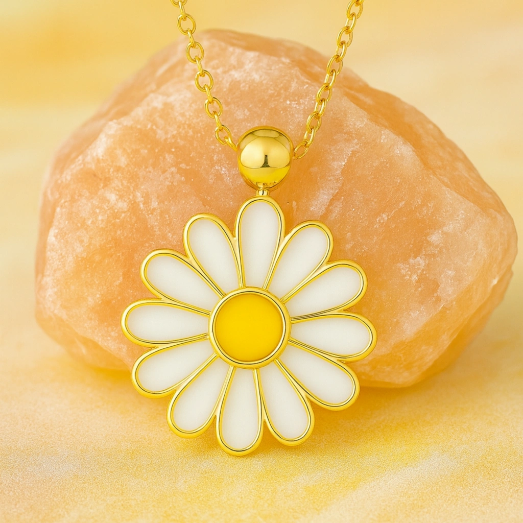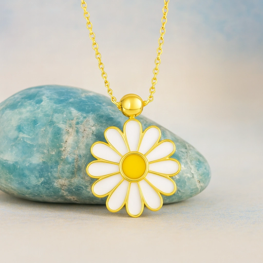 Bu zarif beyaz papatya kolye, çiçek formunun saflığını modern tasarımla buluşturur. Şık ve göz alıcı yapısıyla günlük kullanımdan özel anlara kadar her stile uyum sağlar. Her anı zarafet, saflık ve ince bir anlamla taçlandıran bu kolye, sevdiklerinize verilebilecek en özel hediyelerden biridir.