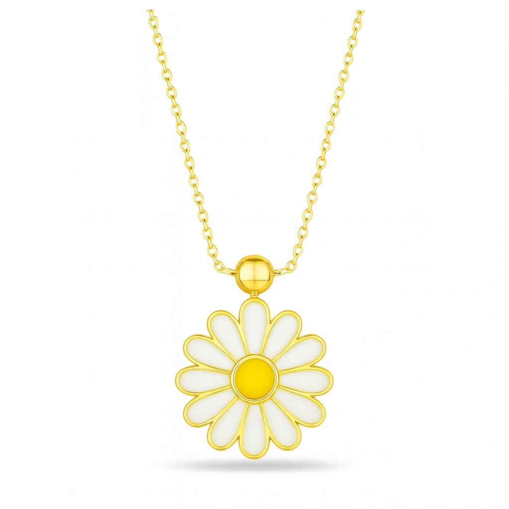 14 Ayar Altın Beyaz Papatya Kolye