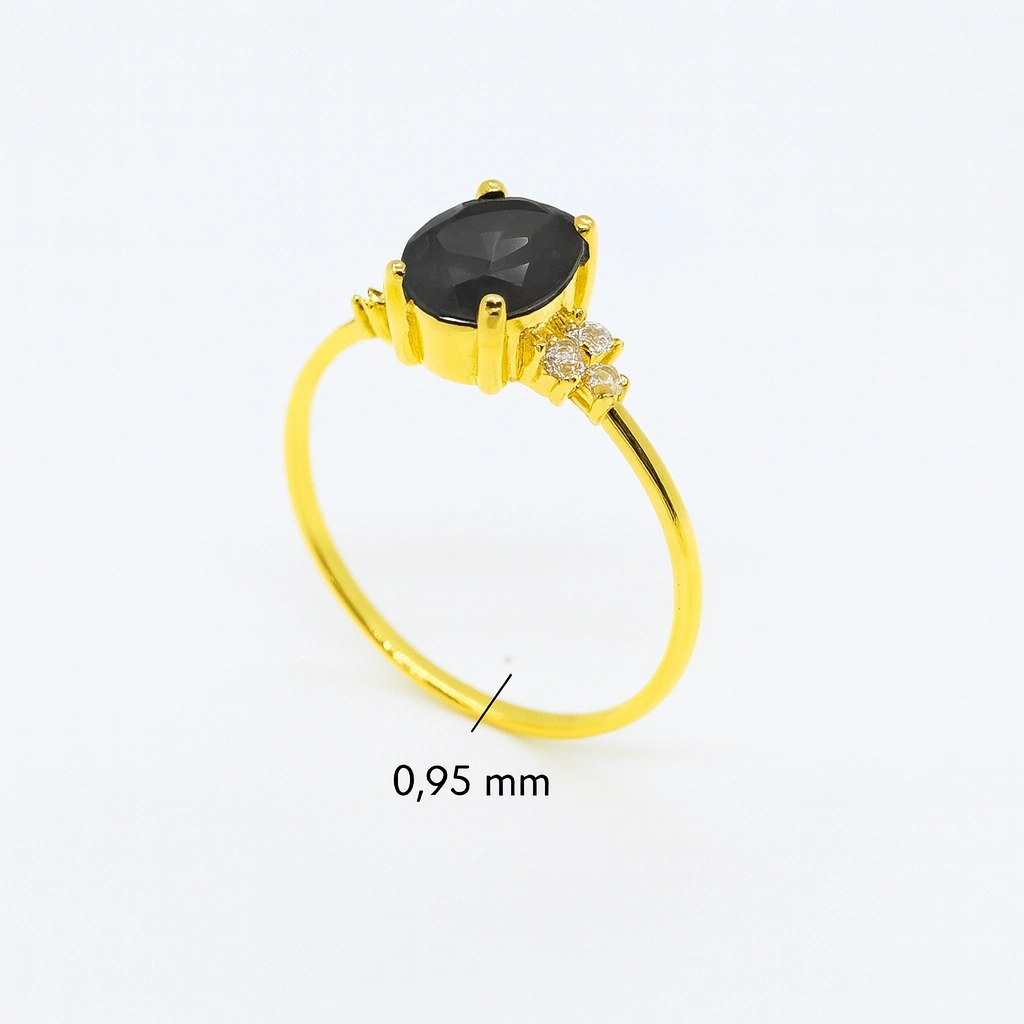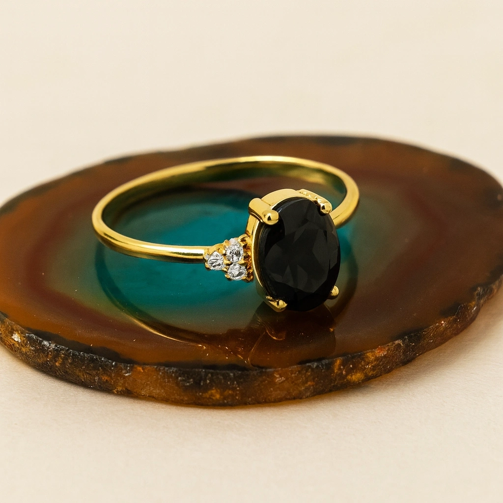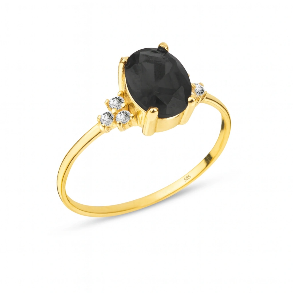 Bağlılığı, bütünlüğü ve anlamlı ilişkileri simgeleyen siyah oniks detaylı bu zarif yüzük, modern ve şık tasarımıyla stilinize özel bir dokunuş katar. İnce işçilikle tasarlanmış oniks detayı, 14 ayar altının ışıltısıyla birleşerek hem günlük kullanımda hem de özel anlarda güçlü ve etkileyici bir görünüm sunar. Kendinize veya sevdiklerinize verilebilecek anlamlı bir hediye alternatifidir.