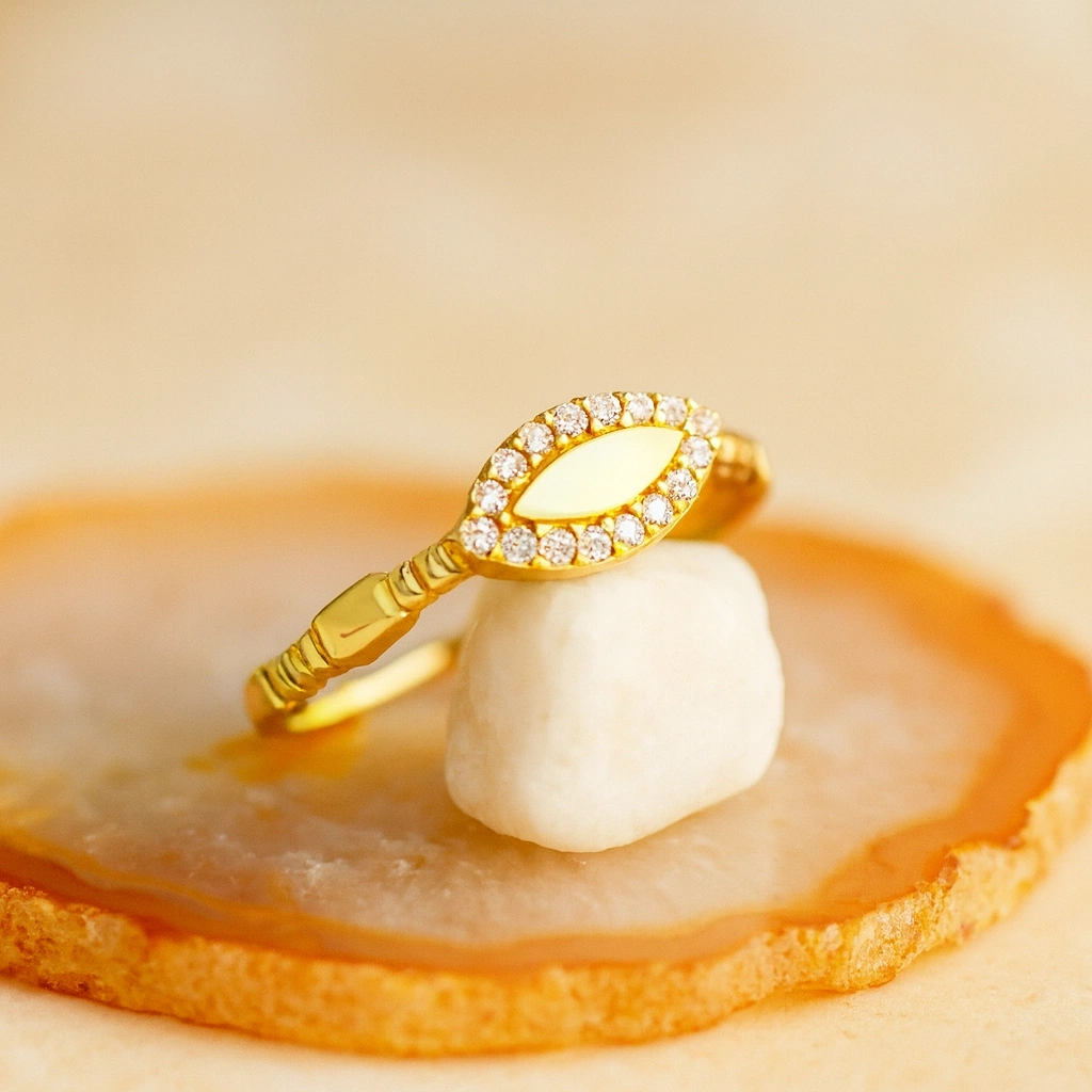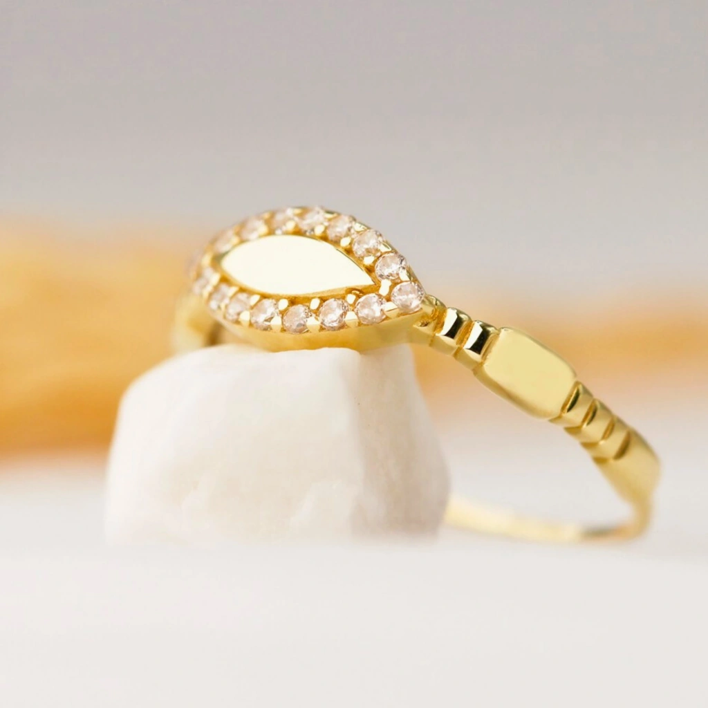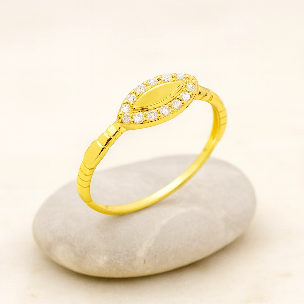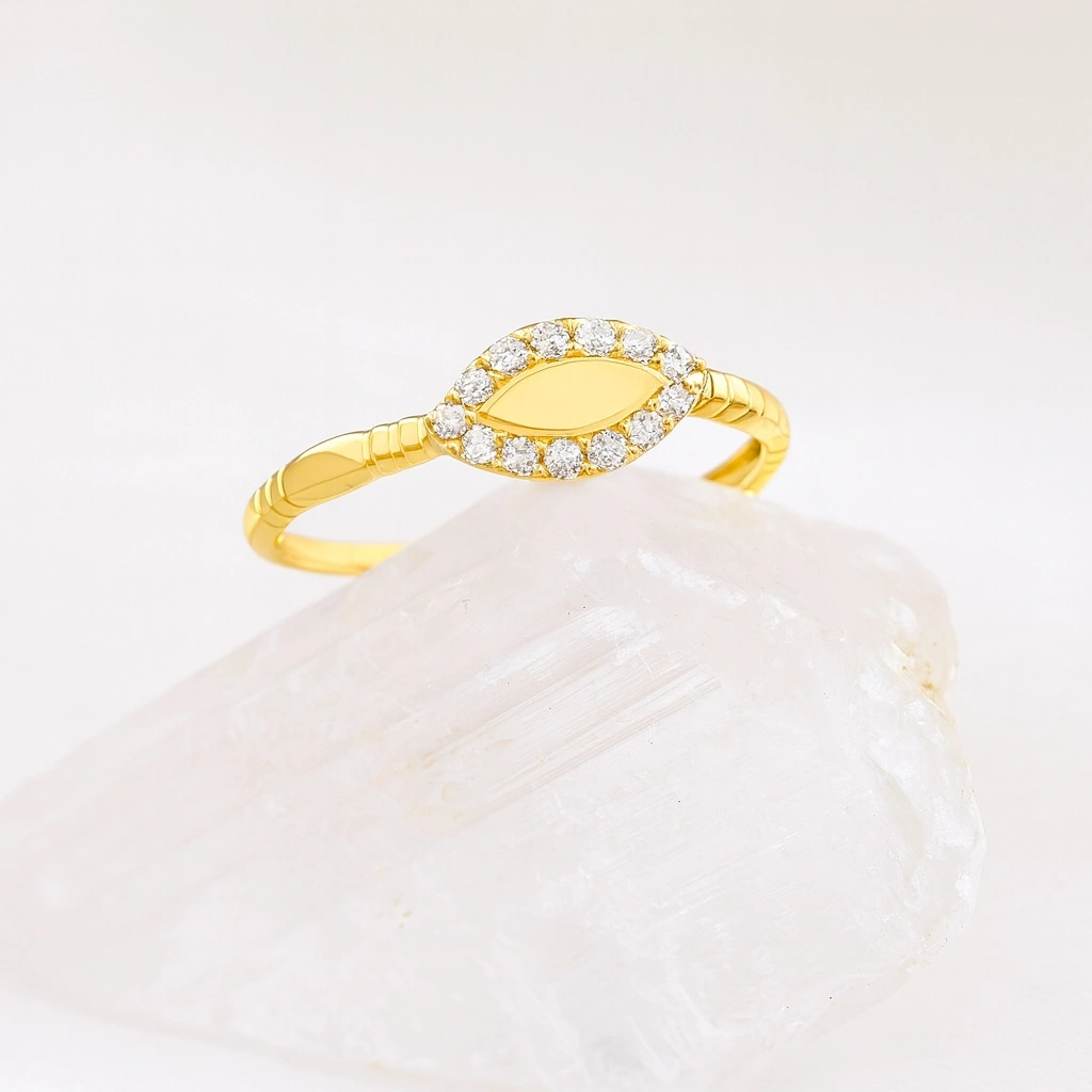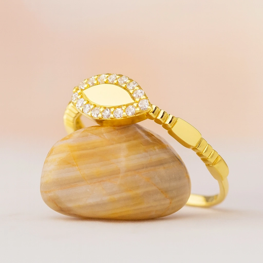 Zarafetin en ince hâlini yansıtan markiz yüzük, klasik ve modern çizgiyi bir arada sunan şık bir tasarımdır. Parmakta narin bir duruş sergileyen formu sayesinde hem günlük kullanım hem de özel günler için mükemmel bir seçenektir. Minimal fakat etkileyici tasarımıyla stilinizi zarafetle tamamlar.