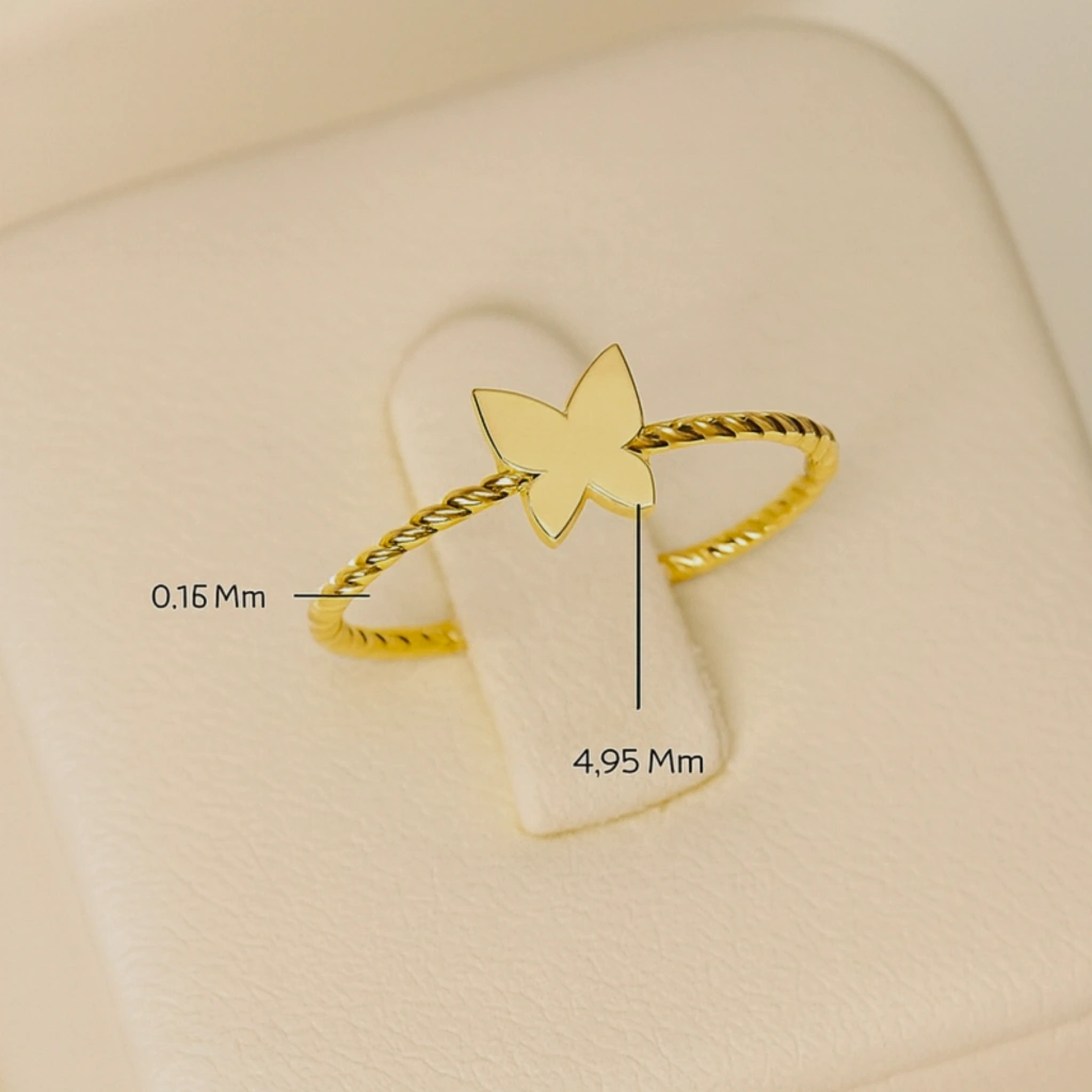 14 Ayar Altın Minik Kelebek Sarmal Yüzük