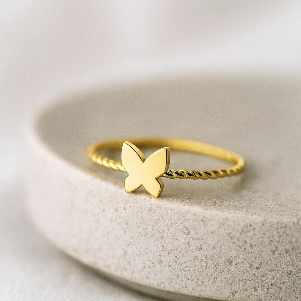 Hafif, zarif ve romantik detaylarıyla öne çıkan minik kelebek sarmal yüzük, doğanın özgürlüğünü ve naifliğini modern bir tasarımla birleştirir. Sarmal formu parmağa zarifçe dolanırken, kelebek motifi tasarıma anlamlı ve estetik bir dokunuş katar. Günlük kullanımda hafif şıklık sunar ve hediye olarak da özel bir anlam taşır.