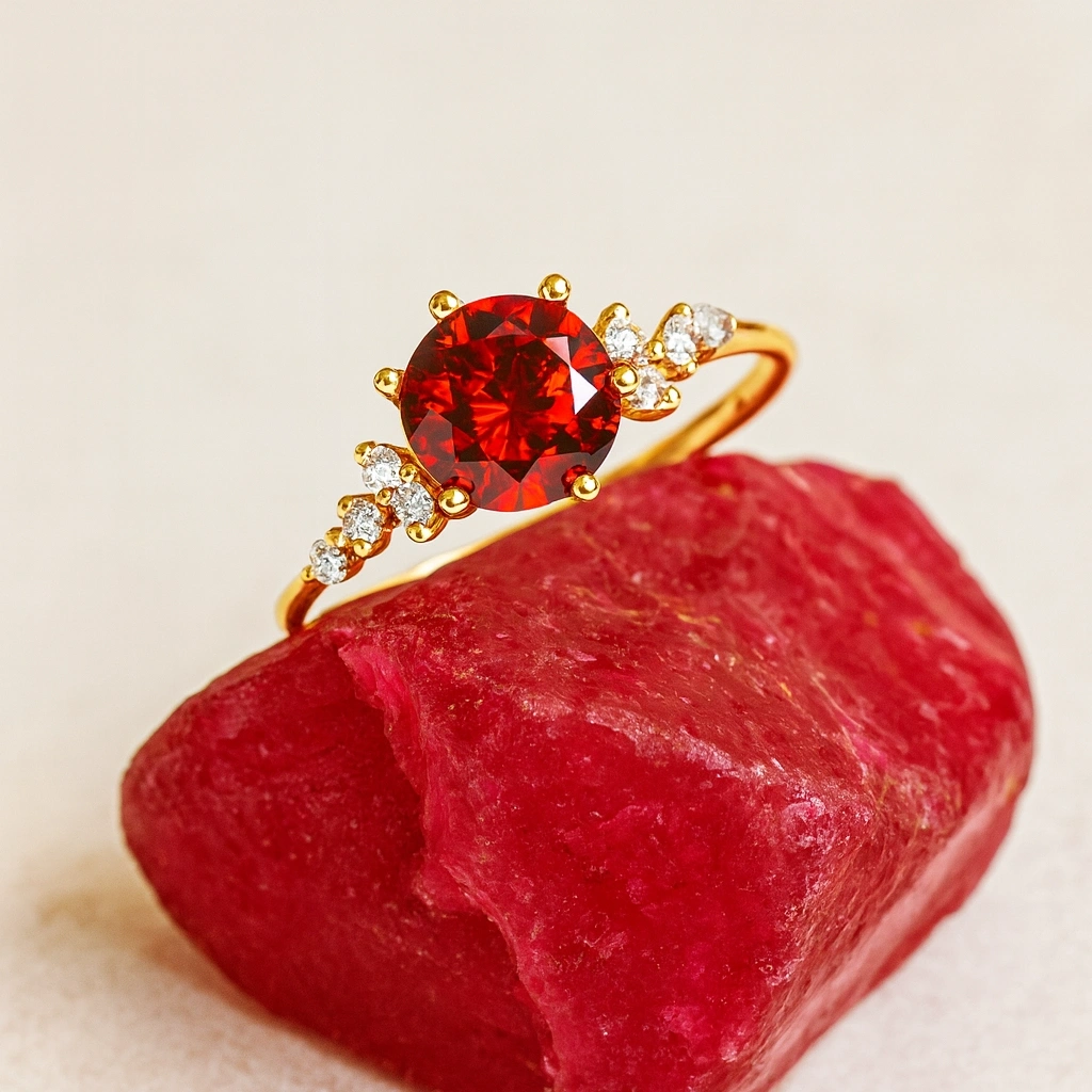 Bu zarif minimal yakut yüzük, modern sadeliği yakut taşının güçlü ve etkileyici rengiyle buluşturur. İnce tasarımı sayesinde günlük kullanıma uygun olduğu gibi özel anlarda da göz alıcı bir tamamlayıcıdır. Her anı zarafet, güç ve anlamla taçlandıran bu yüzük, hem kendiniz hem de sevdikleriniz için ideal bir seçimdir.