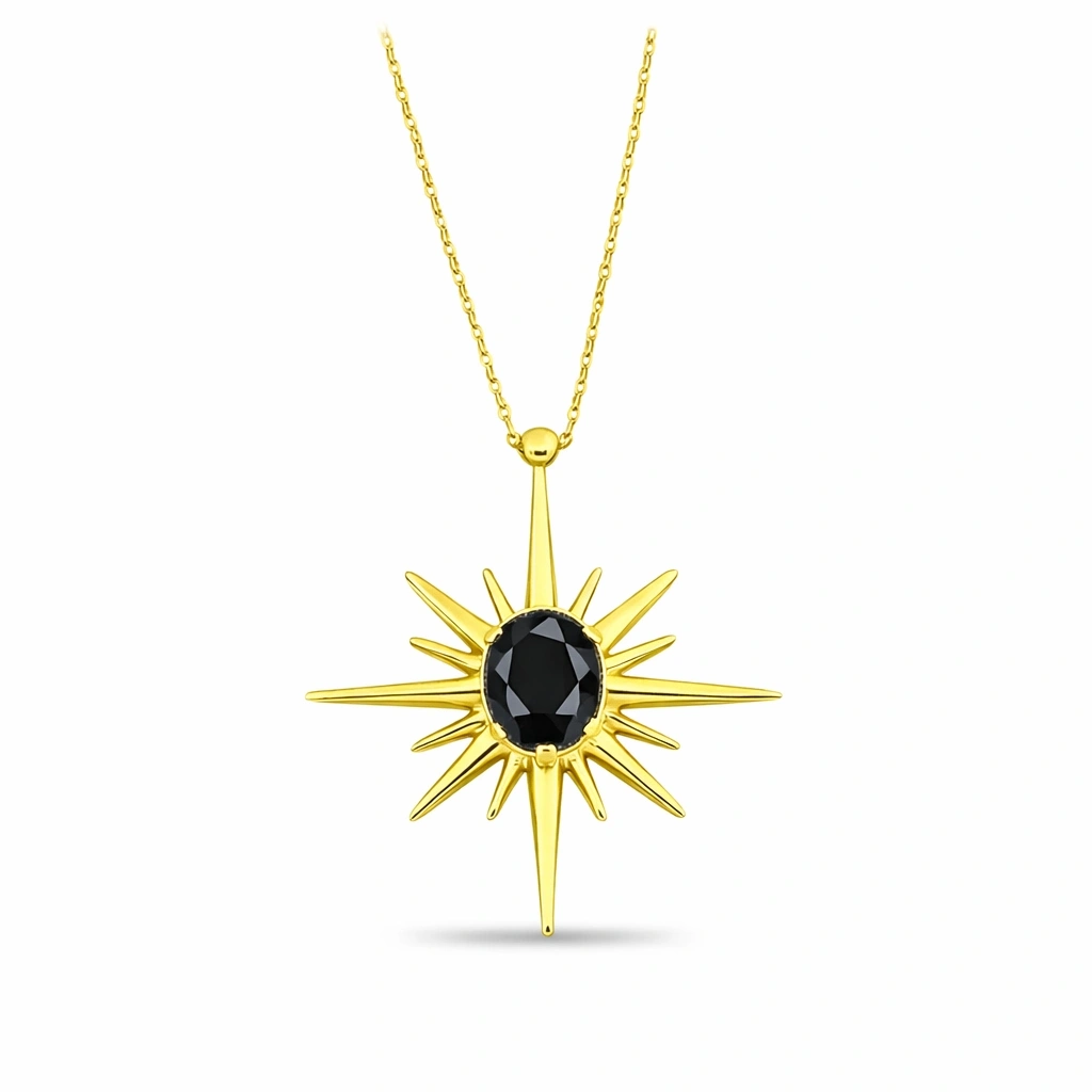 14 Ayar Altın Oniks Taşlı Kuzey Yıldızı Kolye