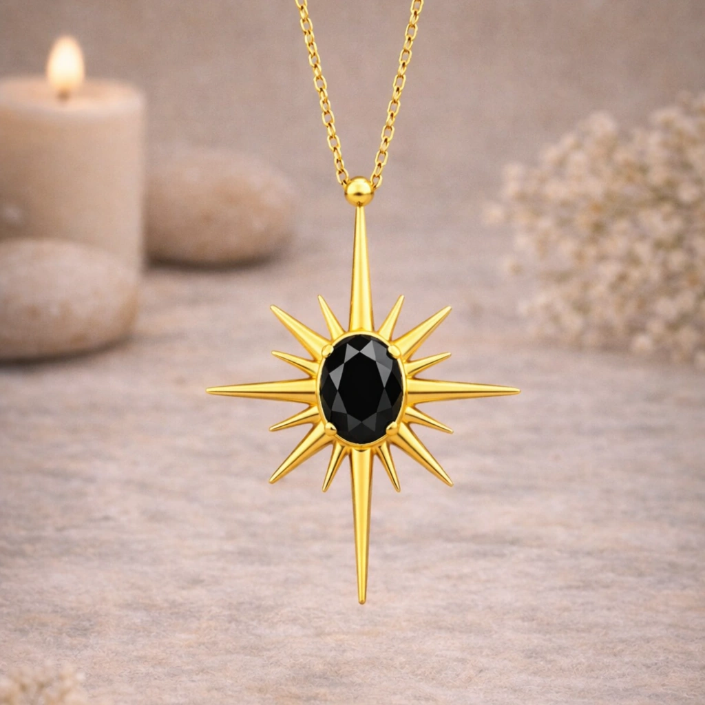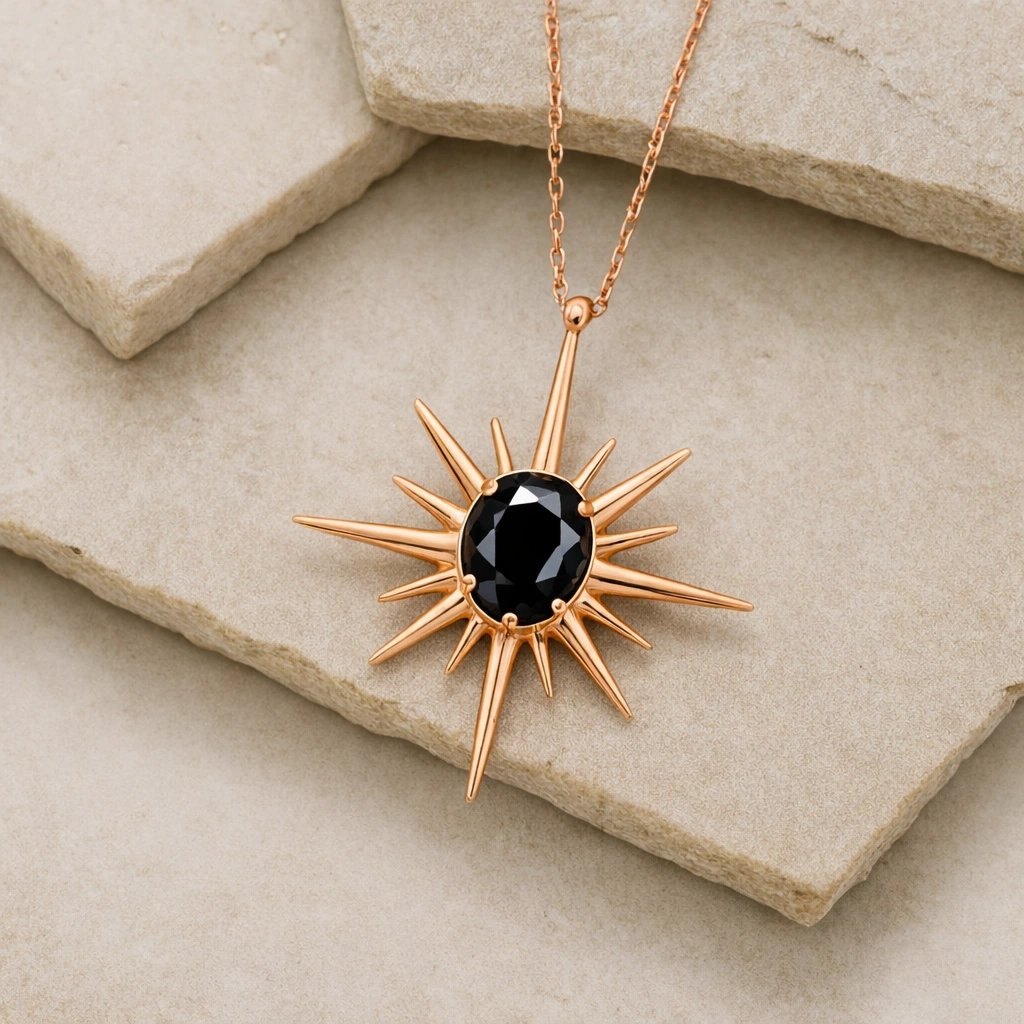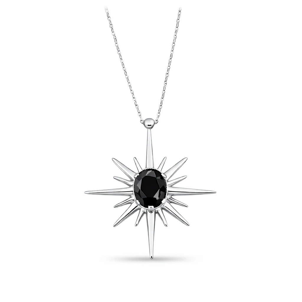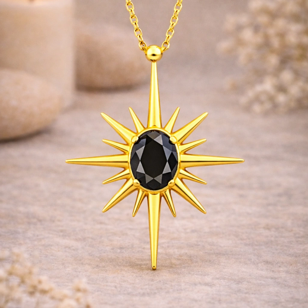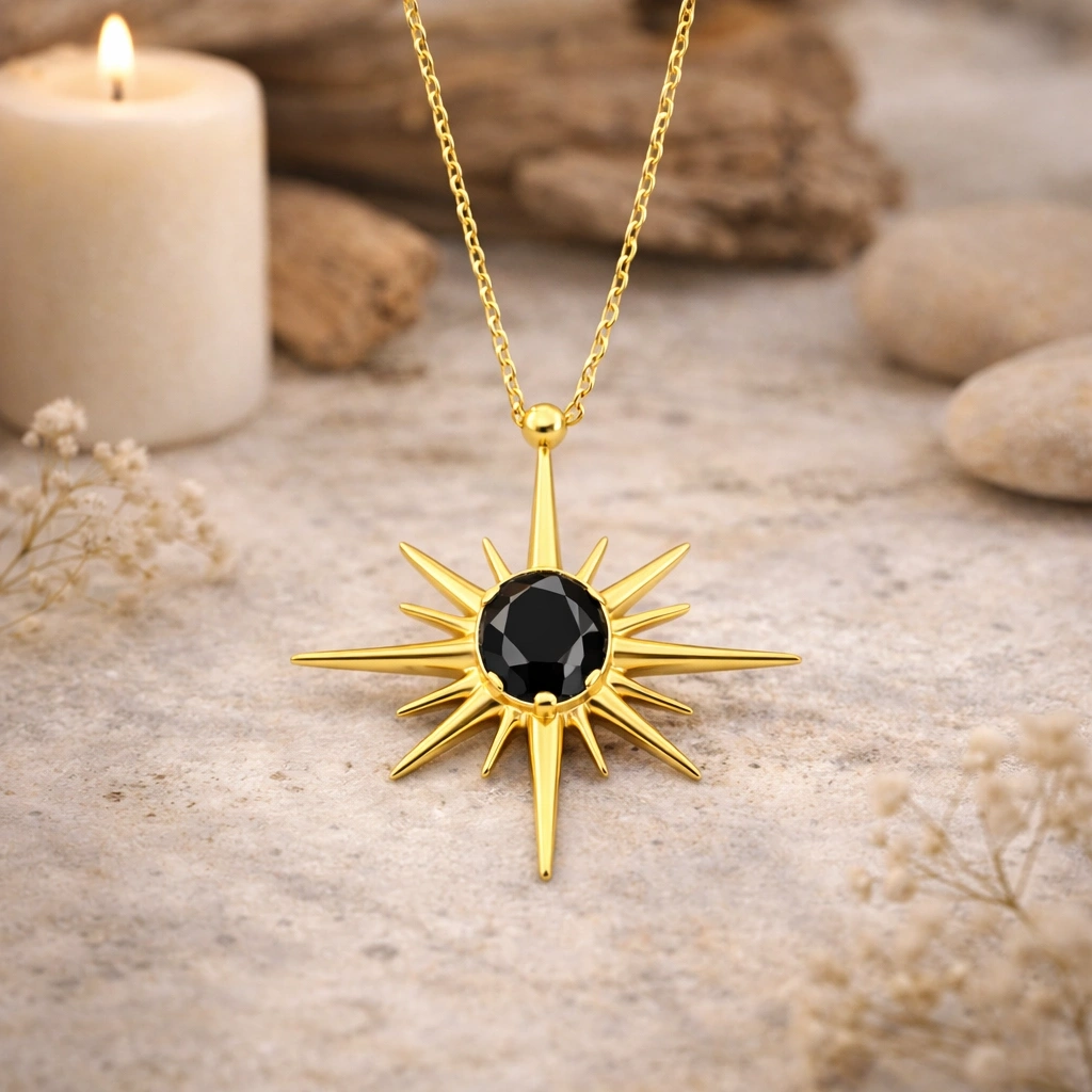 Kuzey yıldızından ilham alan bu kolye, yön gösteren ve ilham veren sembolizmi zarif bir tasarımla bir araya getirir.