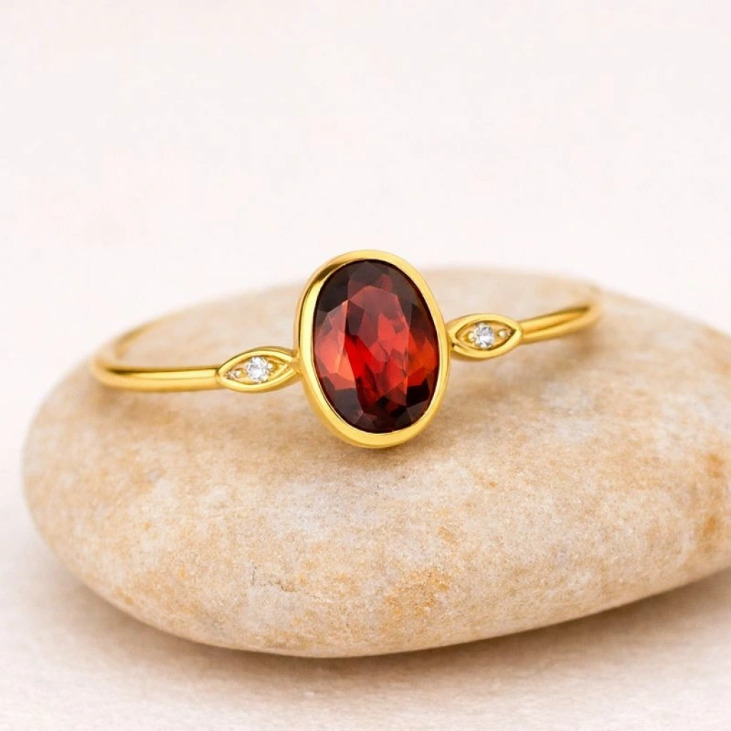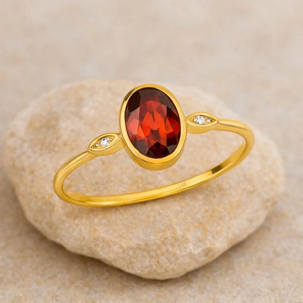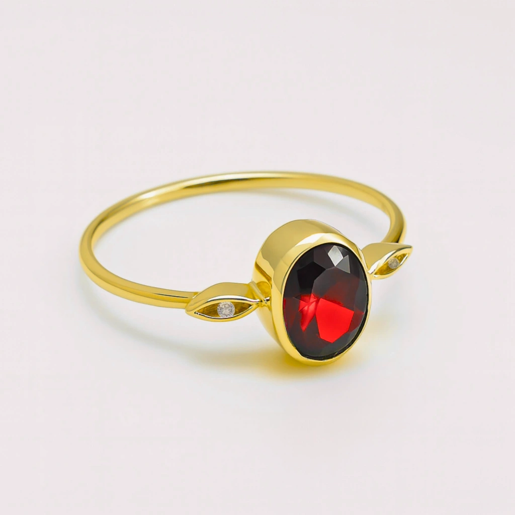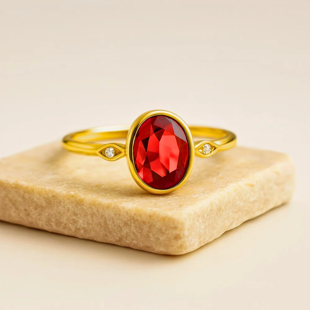 Bu zarif ince yakut yüzük, modern minimalizmi zamansız romantizmle buluşturur. Oval kesim yakut detayı ve sade altın halkasıyla nişan, kombinleme veya anlamlı hediyeler için mükemmel bir tercihtir. Her anı sevgi, tutku ve derin bağlarla simgeleyen zarif bir tasarımdır.