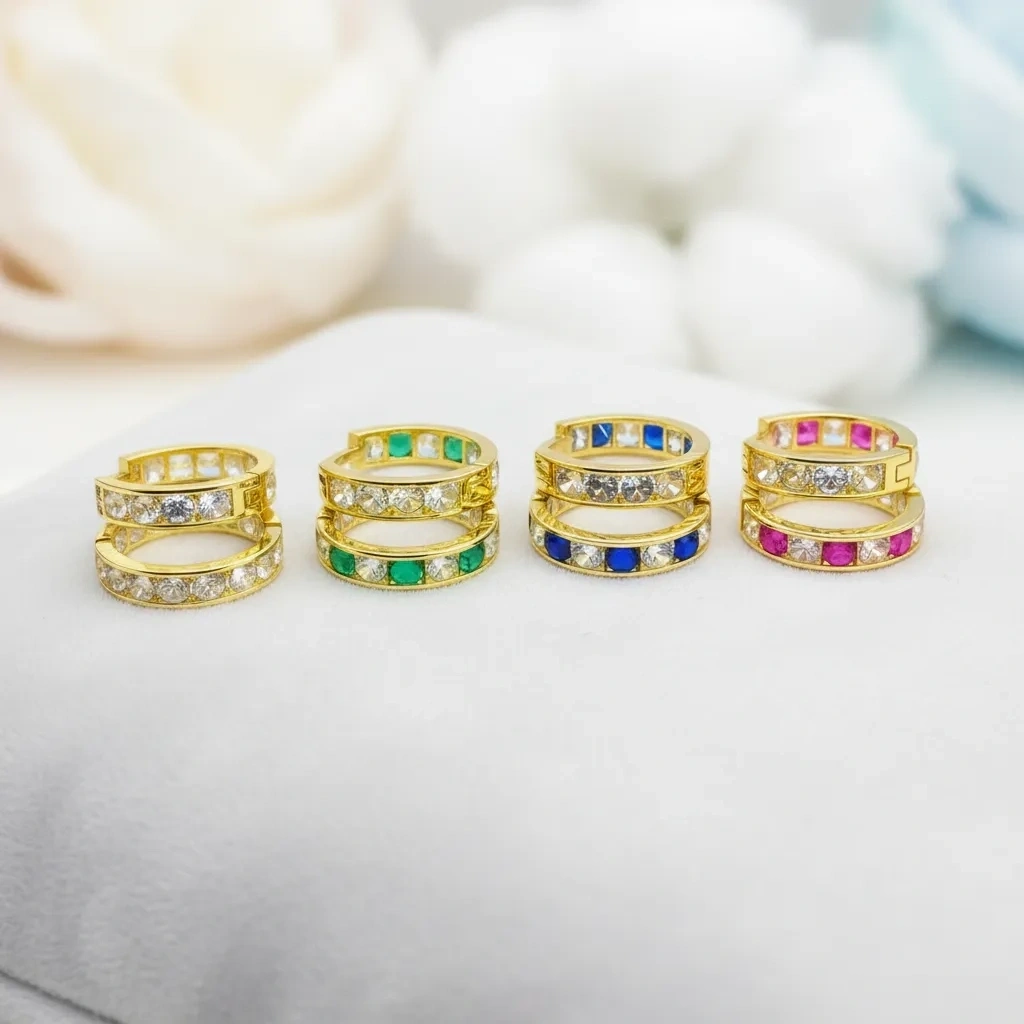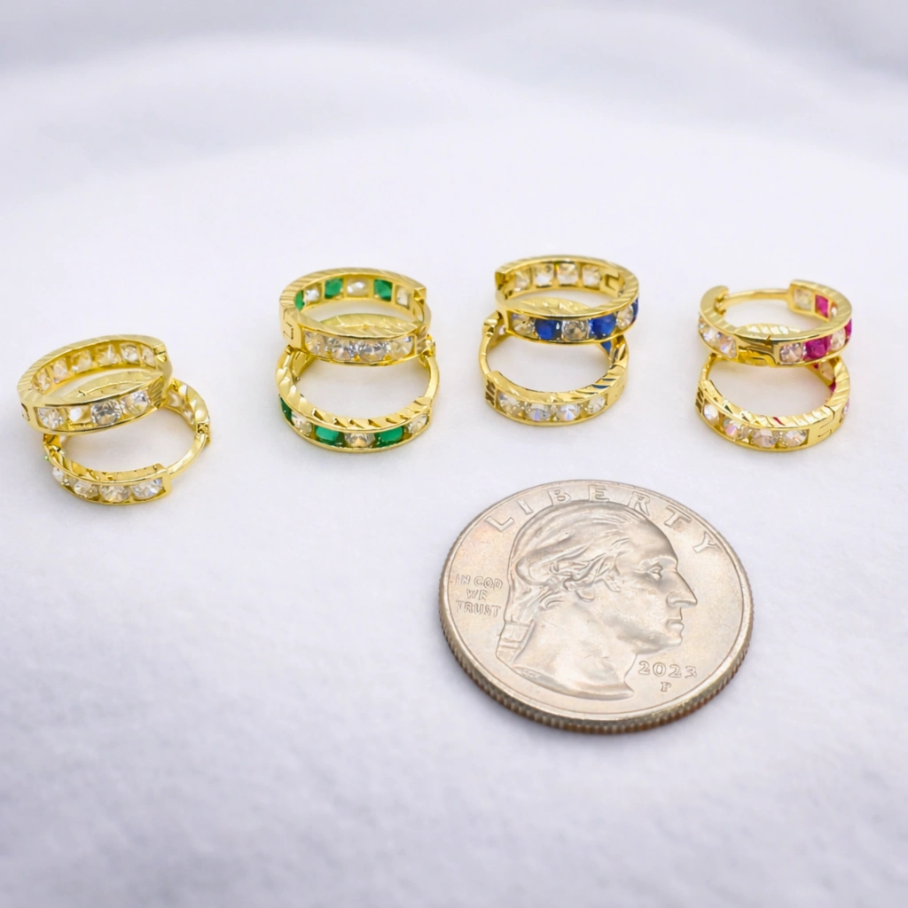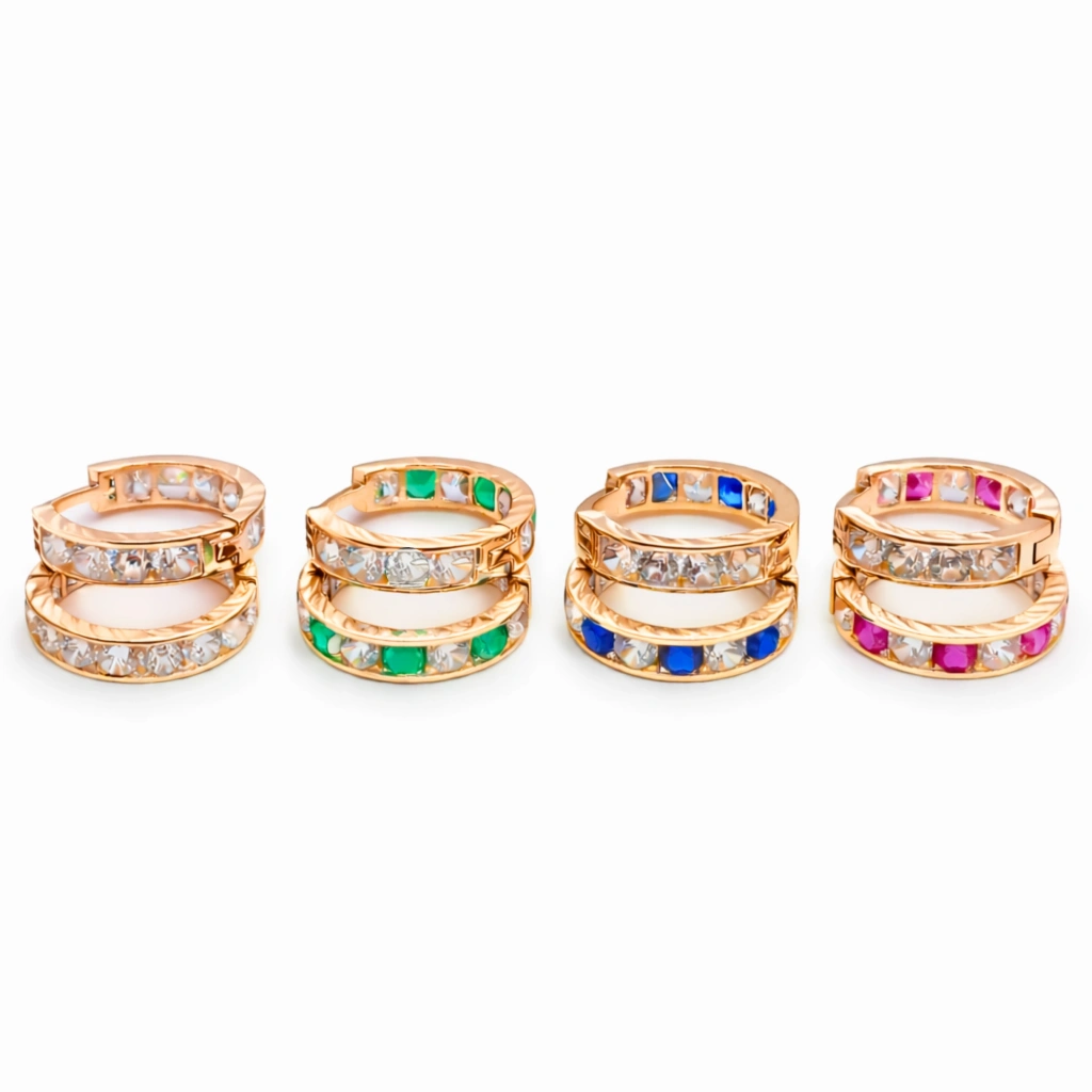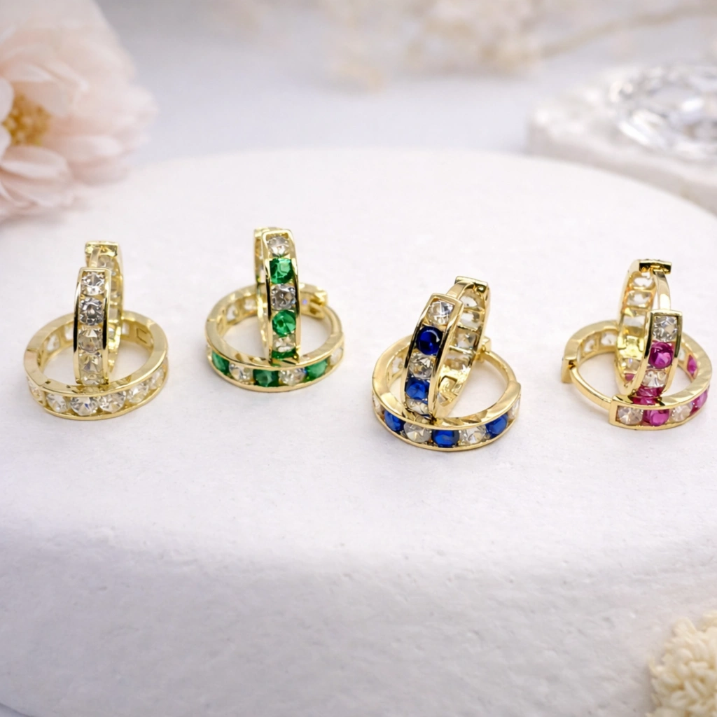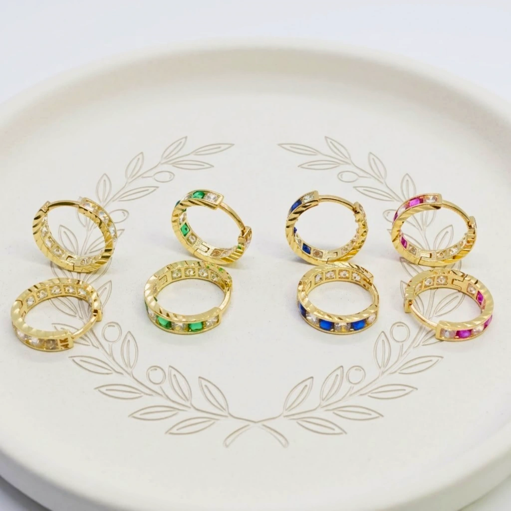 14 Ayar Altın Renkli Taşlı Halka Küpe