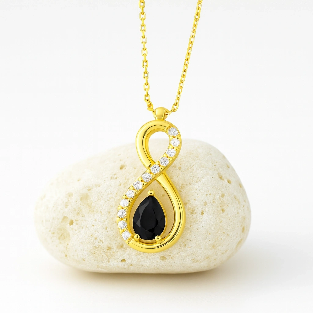 14 Ayar Altın Siyah Oniks Sonsuzluk Kolye