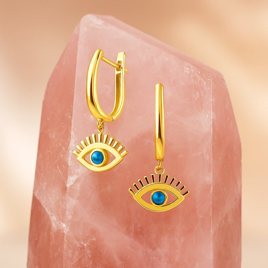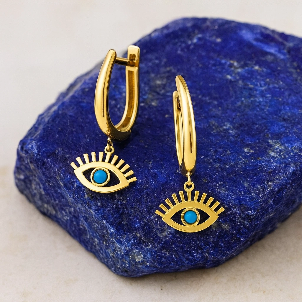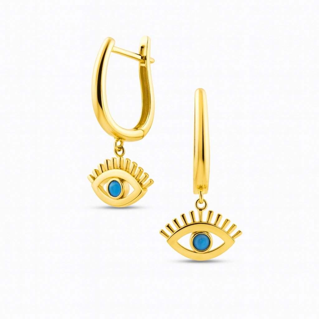 Turkuaz taşının canlı ve ferahlatıcı tonlarını yansıtan bu sallantı küpe, hem modern hem de zarif bir görünüm sunar. İnce tasarımı ve hareketli yapısıyla günlük şıklığı tamamlayan, özel anlarda ise dikkat çeken bir aksesuardır. 14 ayar altının parlak dokusu, turkuaz taşının canlı mavisini öne çıkararak sofistike bir görünüm sağlar.