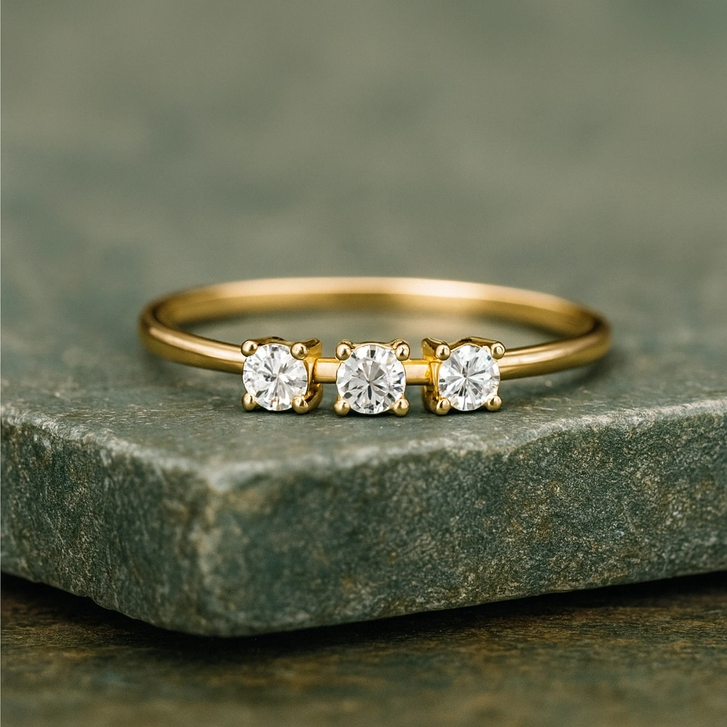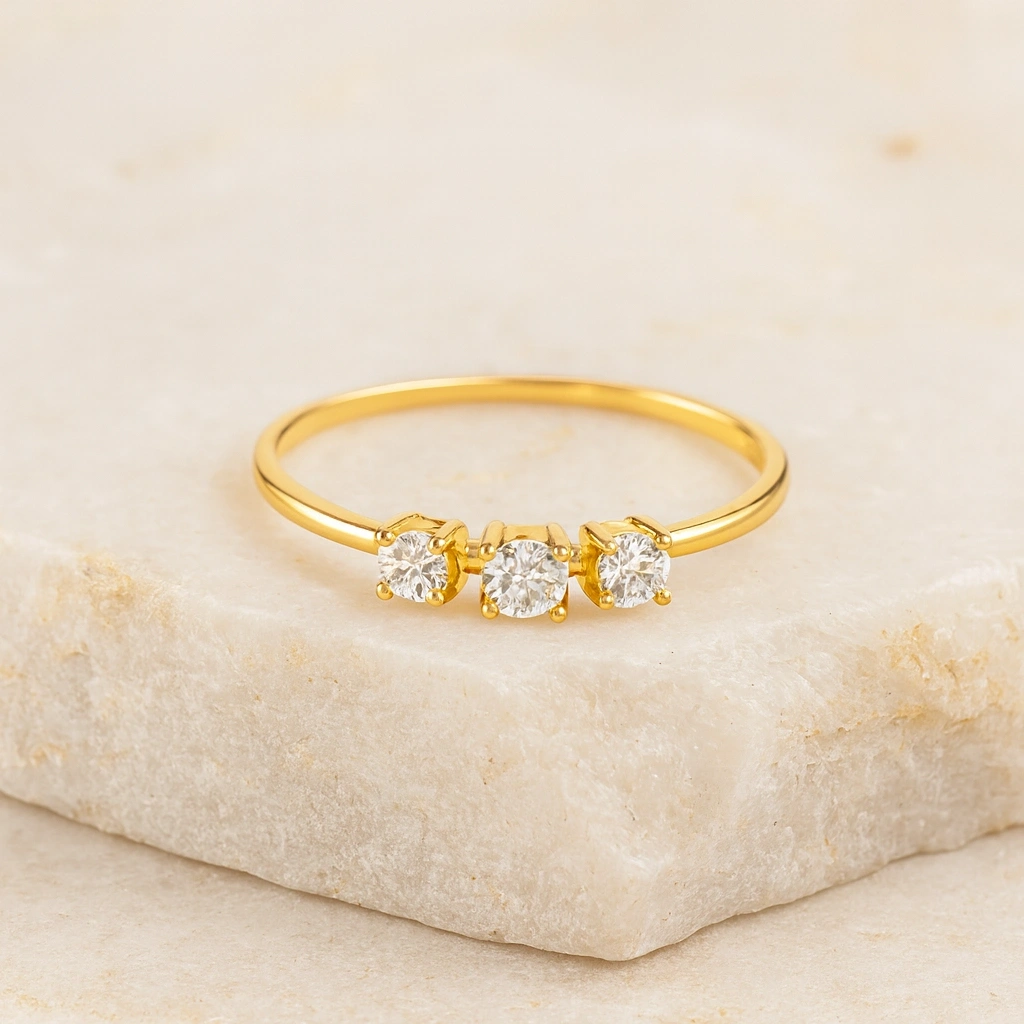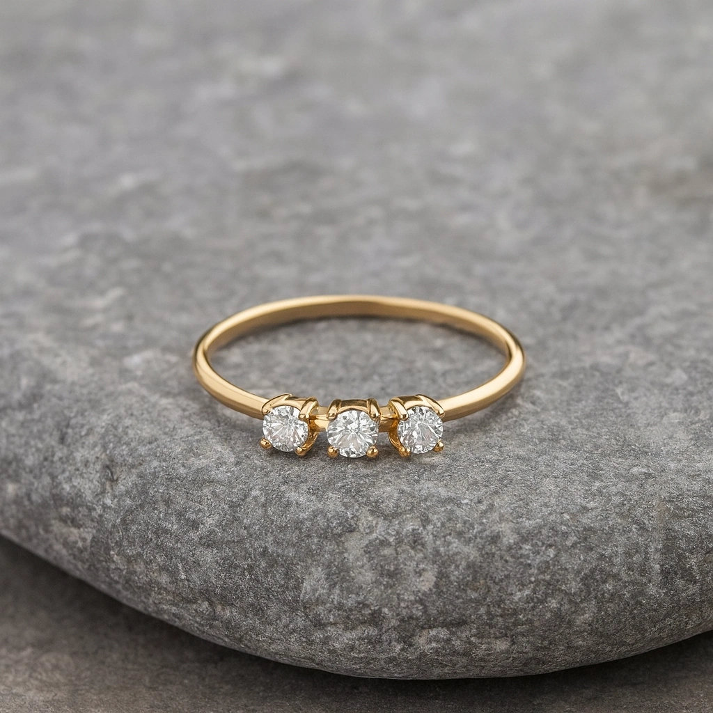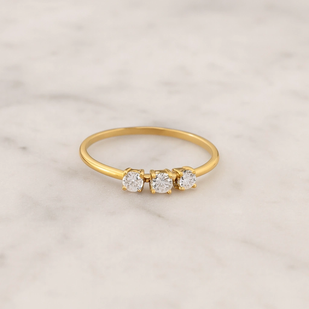 Bağlılığı, birlikteliği ve sonsuz sevgiyi simgeleyen üç taş detaylı bu zarif evlilik yüzüğü, modern ve anlamlı tasarımıyla stilinize özel bir dokunuş katar. İnce işçilikle tasarlanmış üç taş dizilimi, 14 ayar altının ışıltısıyla birleşerek hem özel günlerde hem de günlük kullanımda şık ve göz alıcı bir görünüm sunar. Kendinize veya sevdiklerinize verilebilecek anlamlı bir hediye alternatifidir.