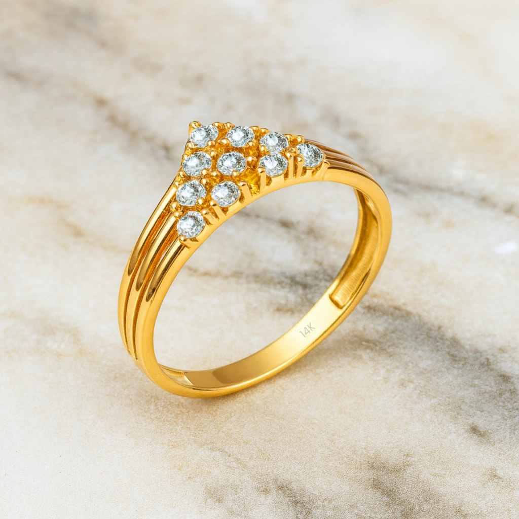 This elegant triangle-shaped ring highlights a modern and minimalist style. Its delicate design and gold shine make it perfect for everyday elegance as well as special occasions. Minimalist details add a sophisticated touch to your look.