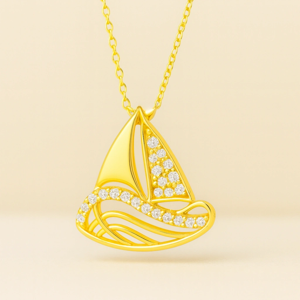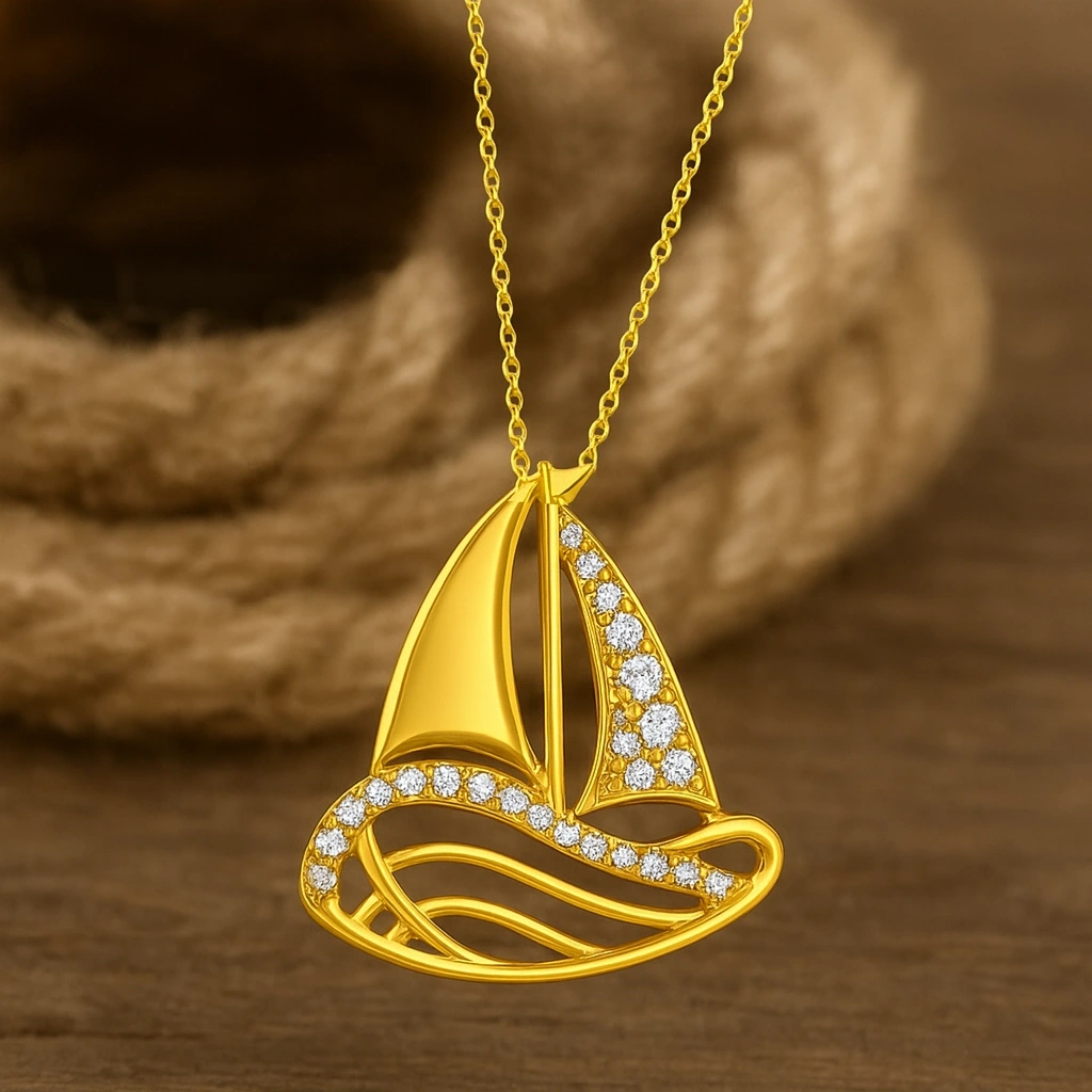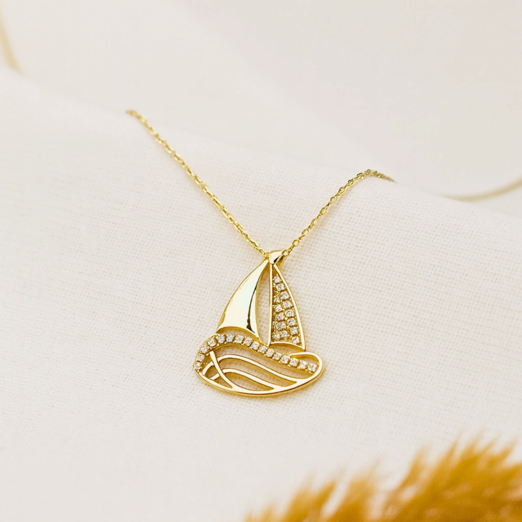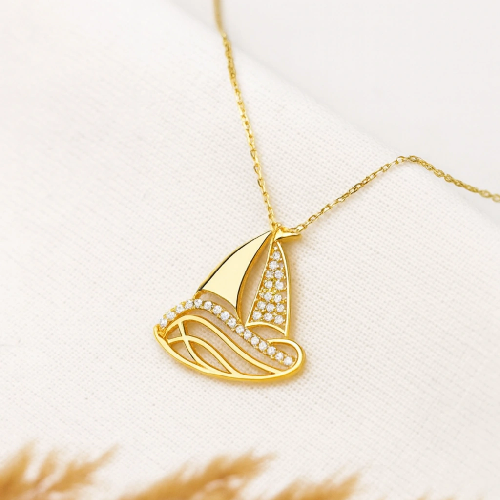 Şimdi Keşfedin: Deniz ve özgürlüğün zarif ifadesi olan bu yelkenli kolyeyi keşfedin.