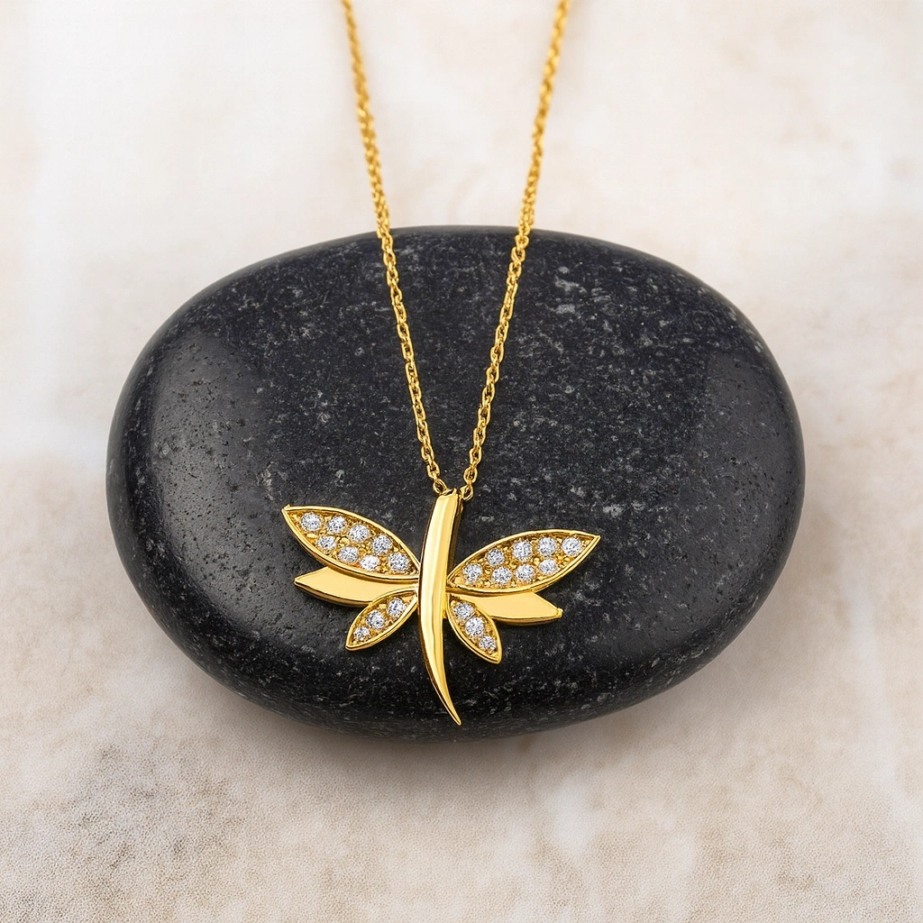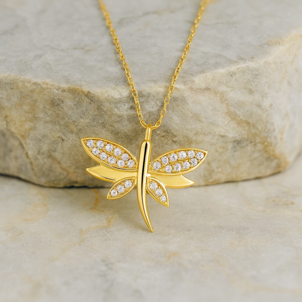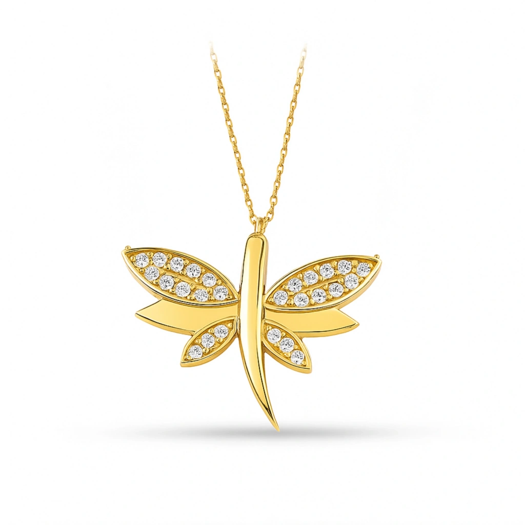 Bağlılığı, özgürlüğü ve şansı simgeleyen yusufçuk detaylı bu zarif kolye, modern ve anlamlı tasarımıyla stilinize özel bir dokunuş katar. İnce işçilikle tasarlanmış yusufçuk motifi, 14 ayar altının ışıltısıyla birleşerek hem günlük kullanımda hem de özel anlarda şık ve büyüleyici bir görünüm sunar. Kendinize veya sevdiklerinize verilebilecek anlamlı bir hediye alternatifidir.
