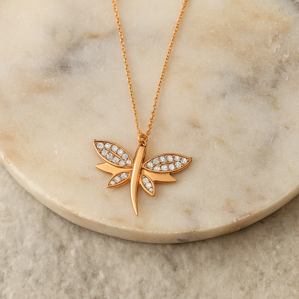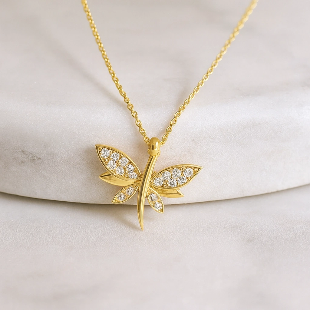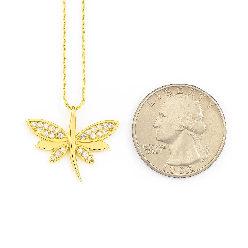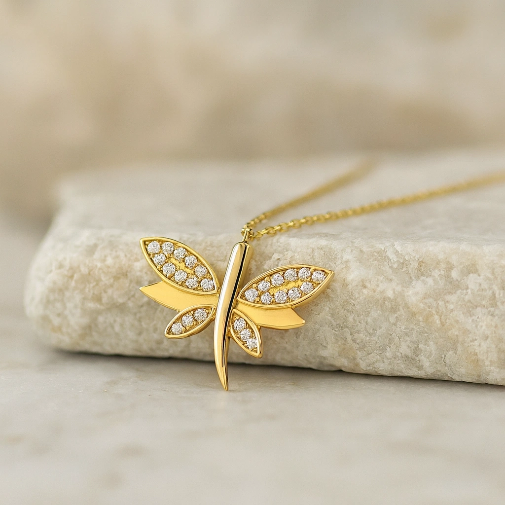 Bağlılığı, özgürlüğü ve şansı simgeleyen yusufçuk detaylı bu zarif kolye, modern ve anlamlı tasarımıyla stilinize özel bir dokunuş katar. İnce işçilikle tasarlanmış yusufçuk motifi, 14 ayar altının ışıltısıyla birleşerek hem günlük kullanımda hem de özel anlarda şık ve büyüleyici bir görünüm sunar. Kendinize veya sevdiklerinize verilebilecek anlamlı bir hediye alternatifidir.