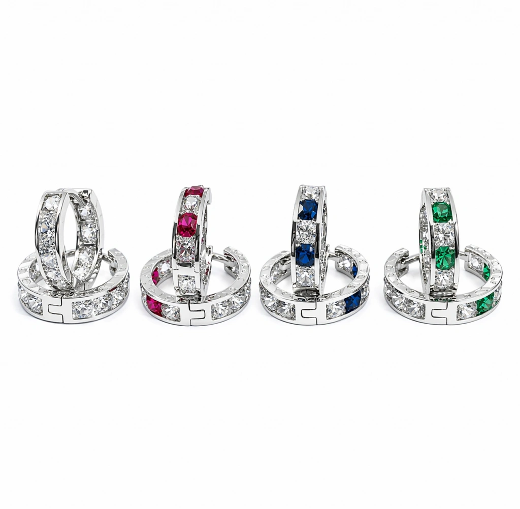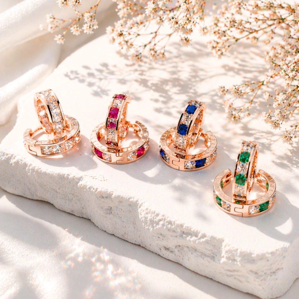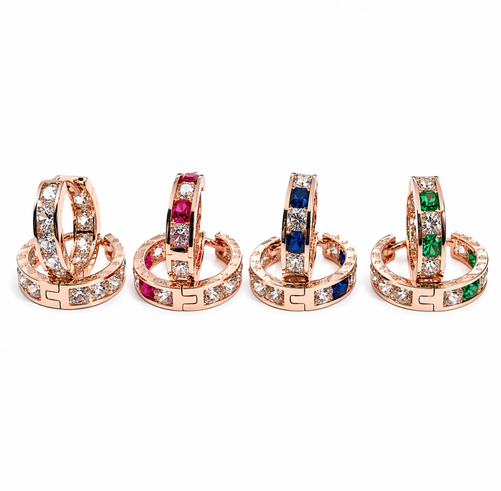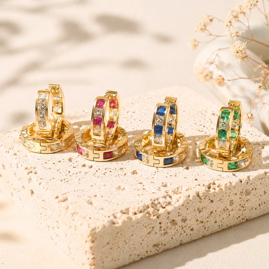 Minimal halka formu ve farklı taş seçenekleri ile tasarlanan bu küpe, sade ve modern bir stil sunar.