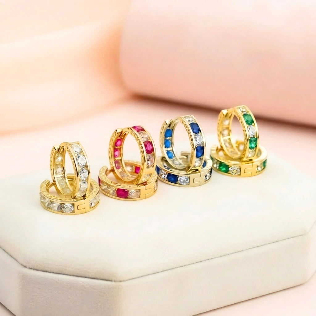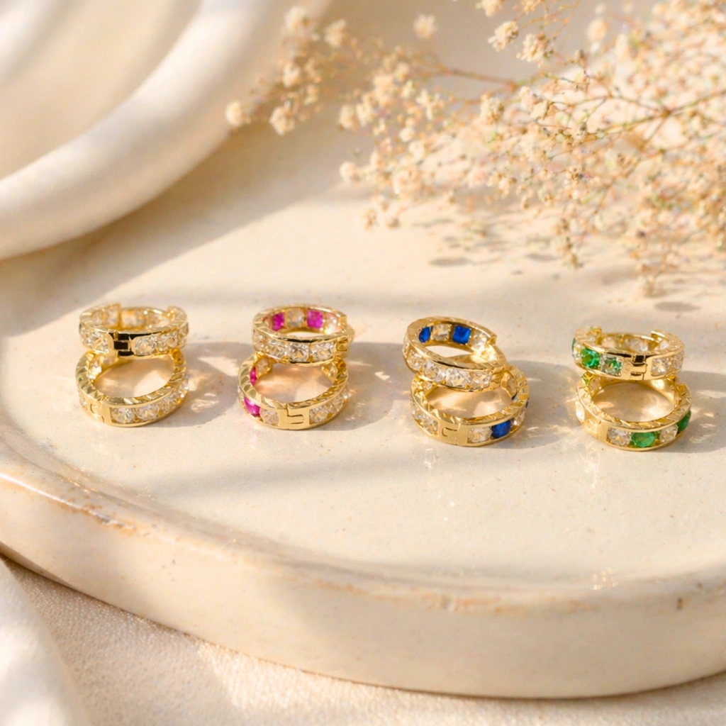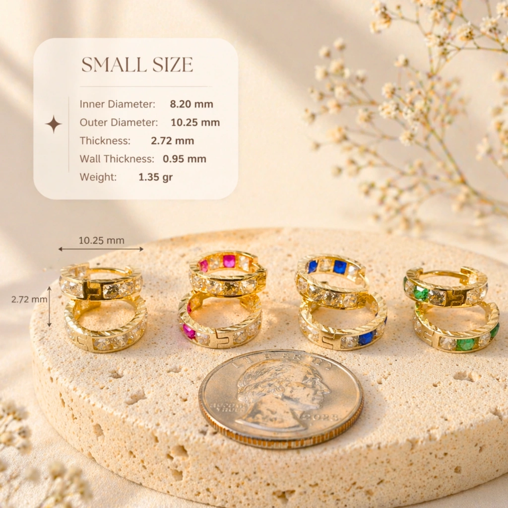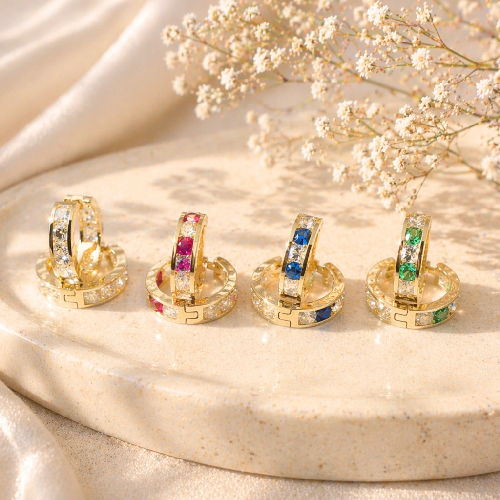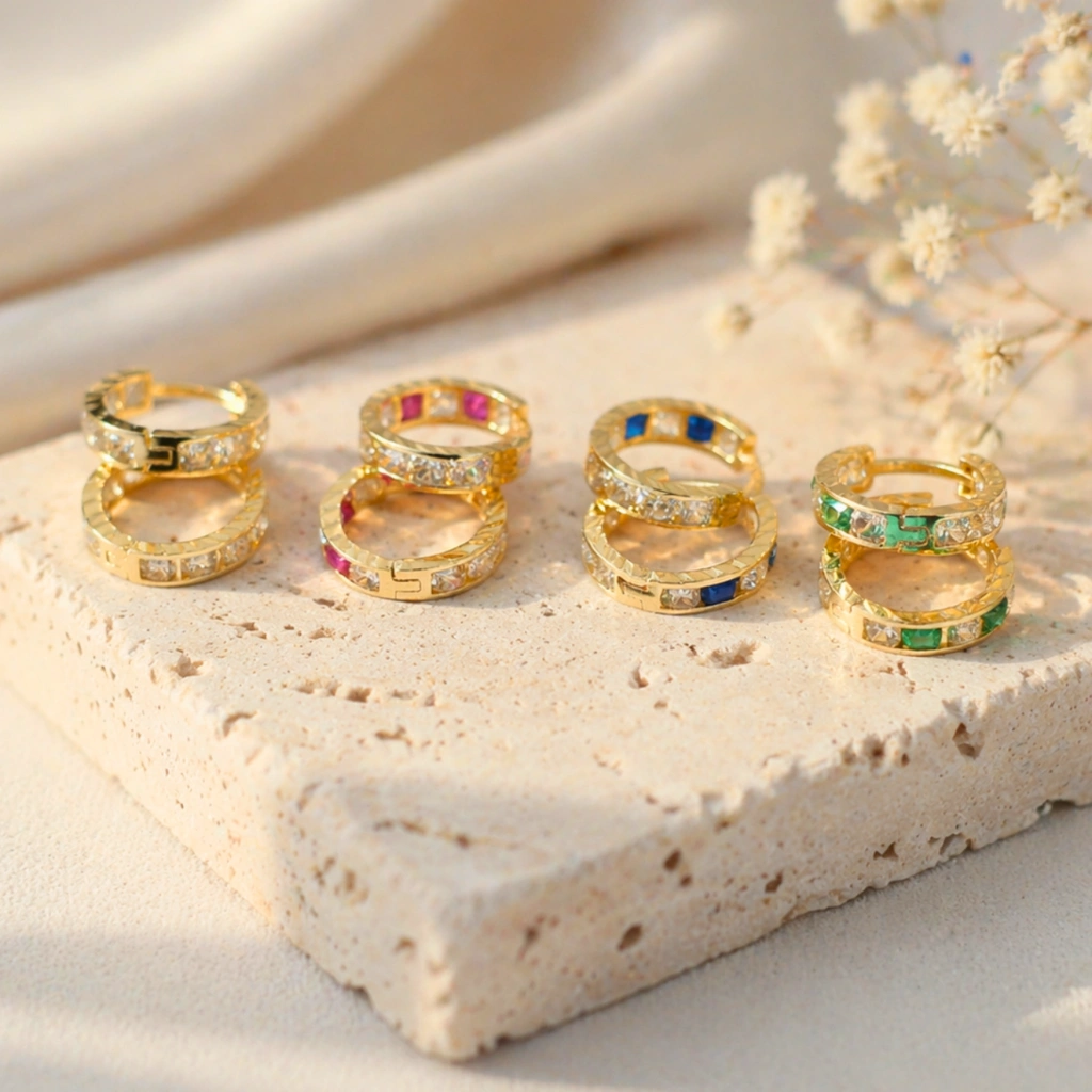 14 Ayar Altın Renkli Taş Seçenekli Minimal Halka Küpe