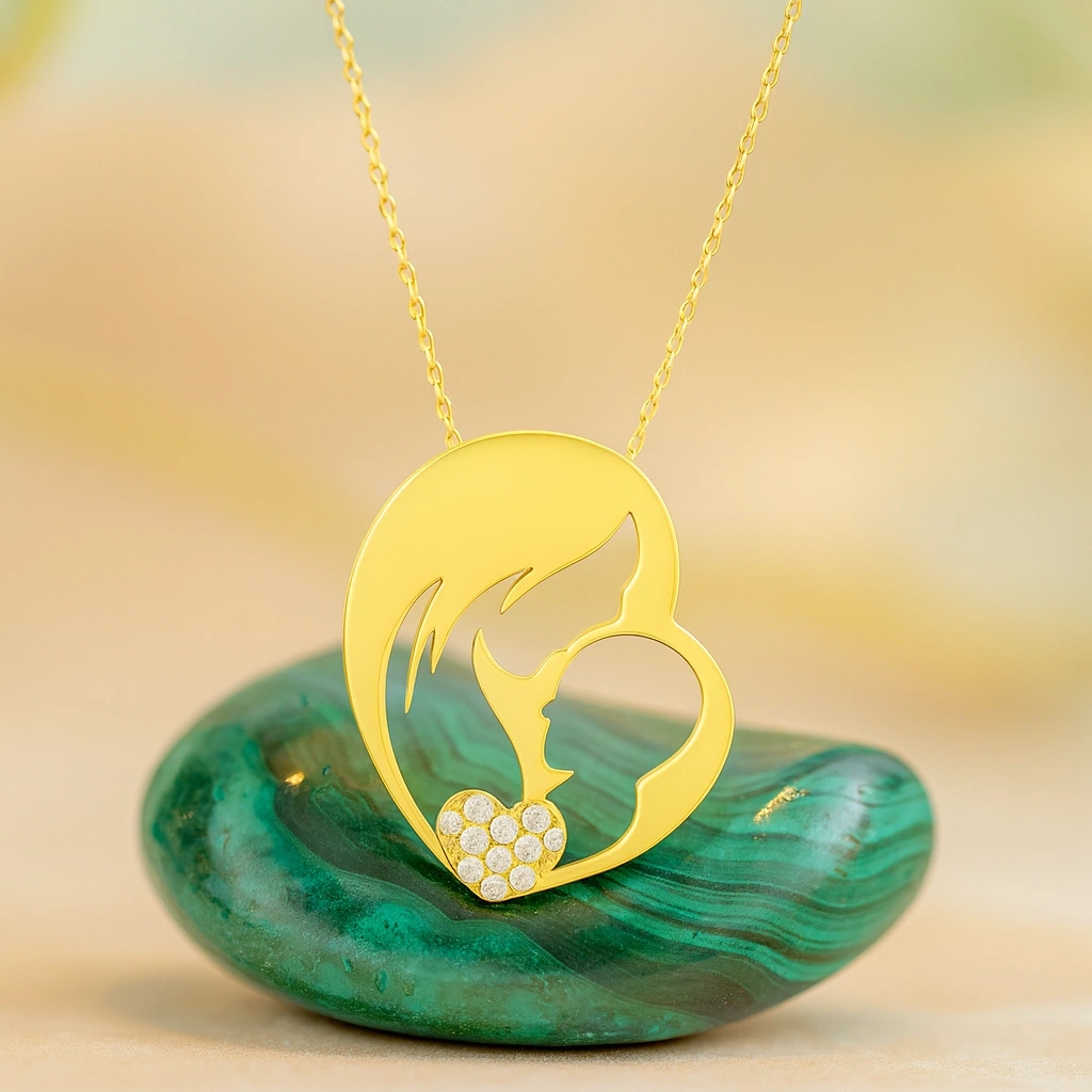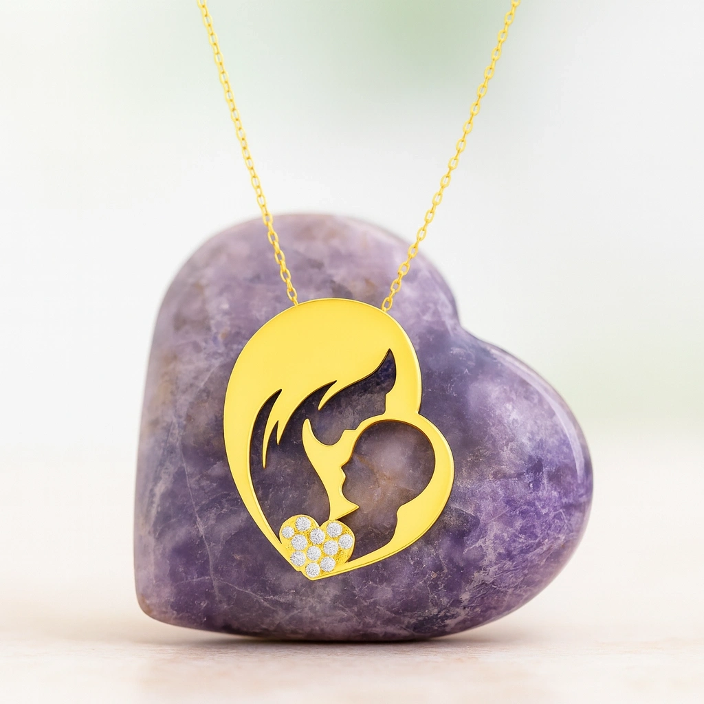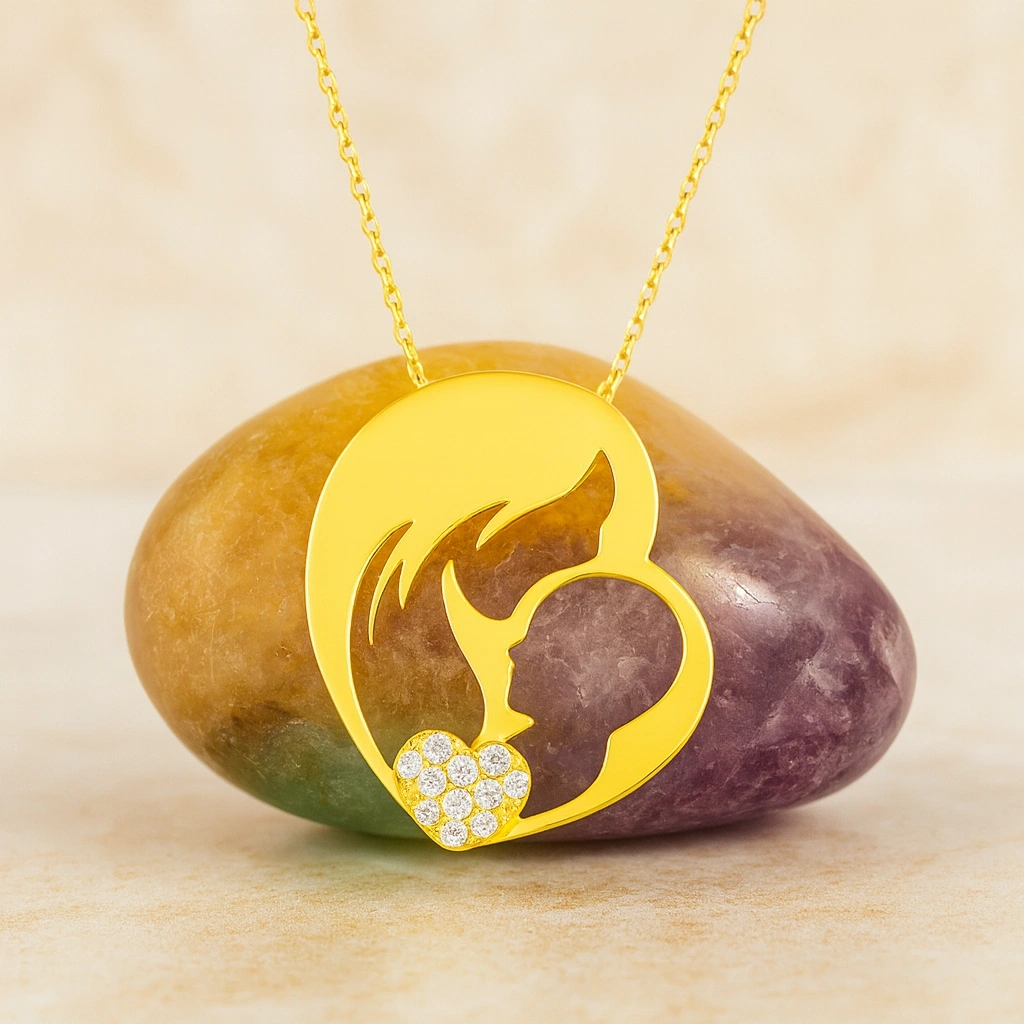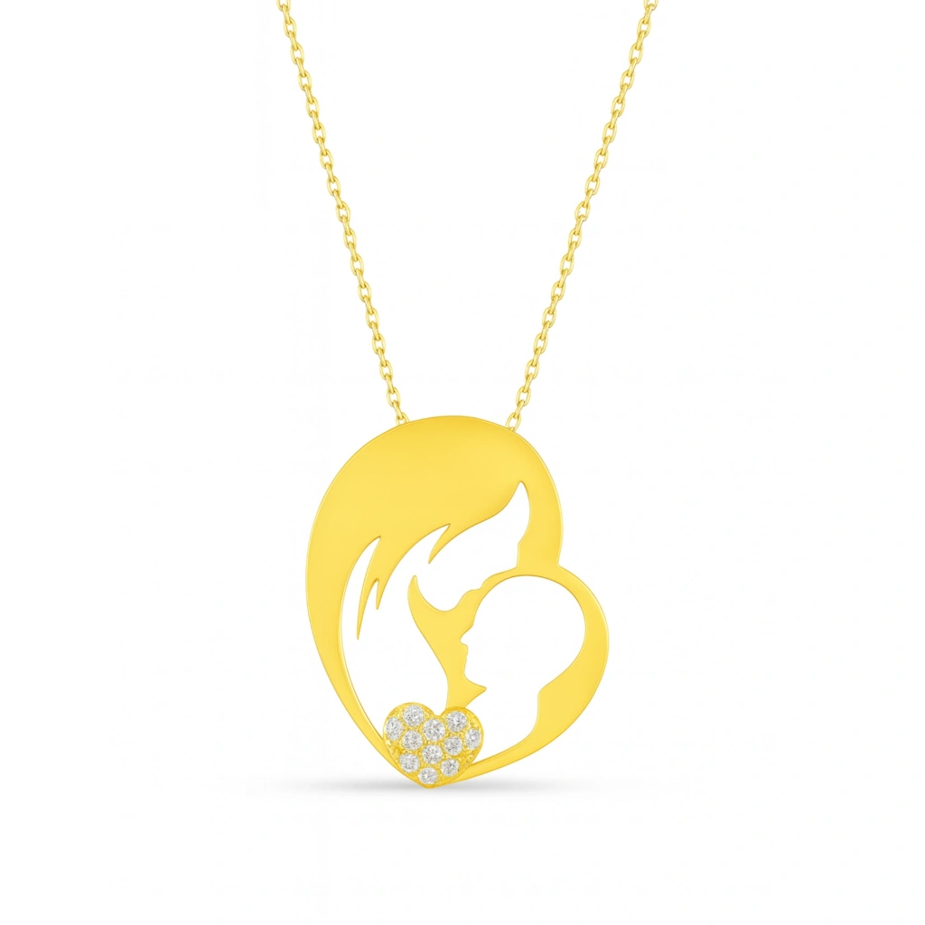 Anne ve bebeğin sevgi dolu bağını zarif bir silüetle yansıtan bu özel kolye, duygusal anlamı güçlü bir tasarım sunar. 14 ayar altının sıcak parıltısıyla birleşen anne-bebek figürü, hem şık hem de sentimental bir görünüm oluşturur. Hem yeni annelere hem de anlamlı bir hediye arayanlara hitap eden zarif bir parçadır.