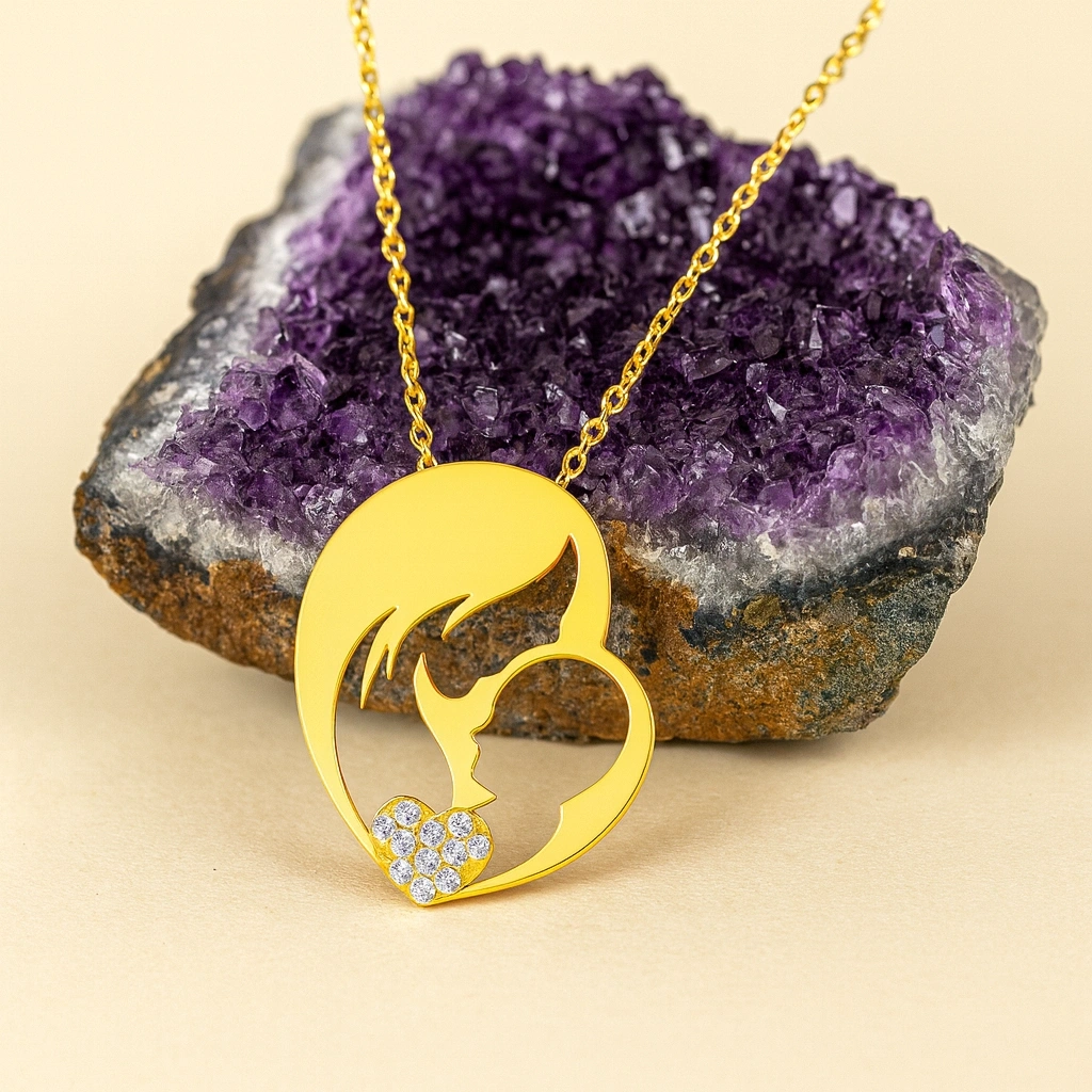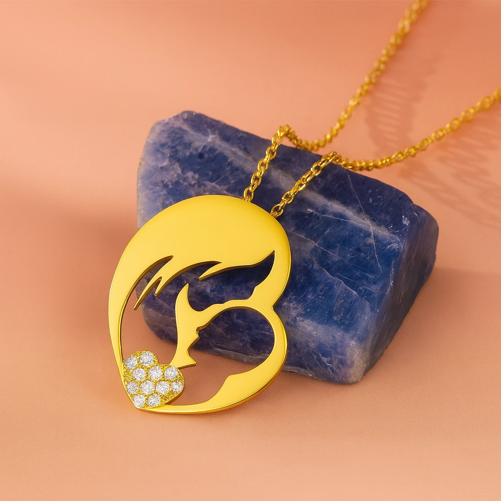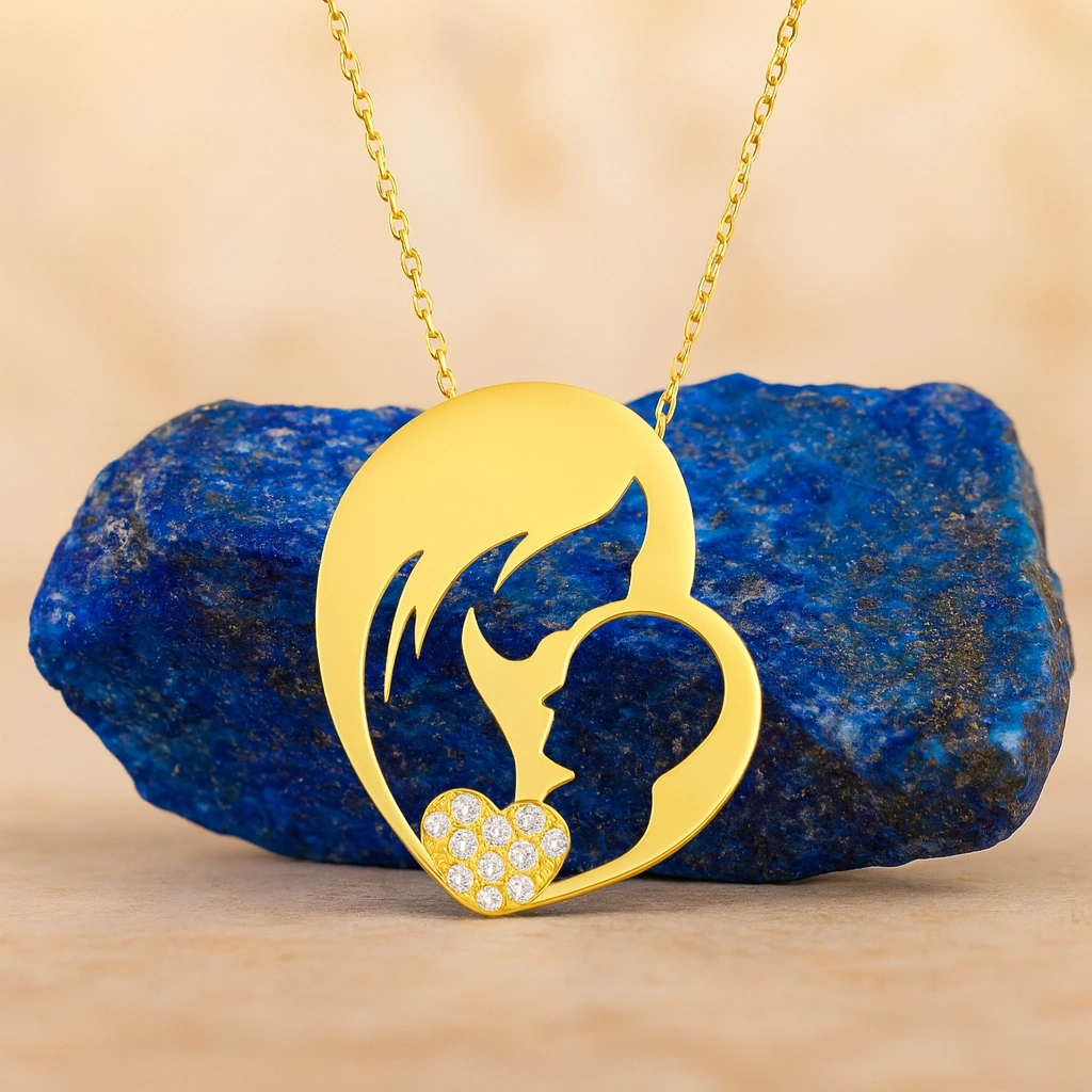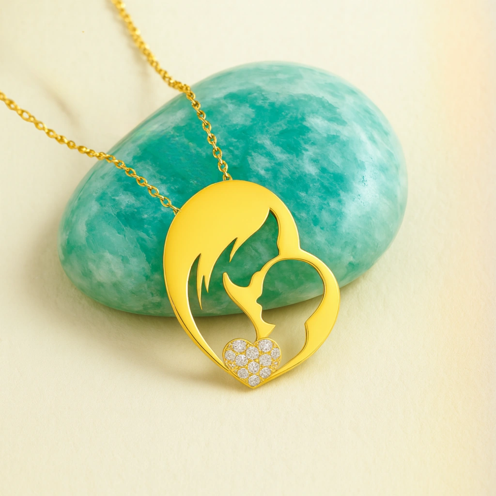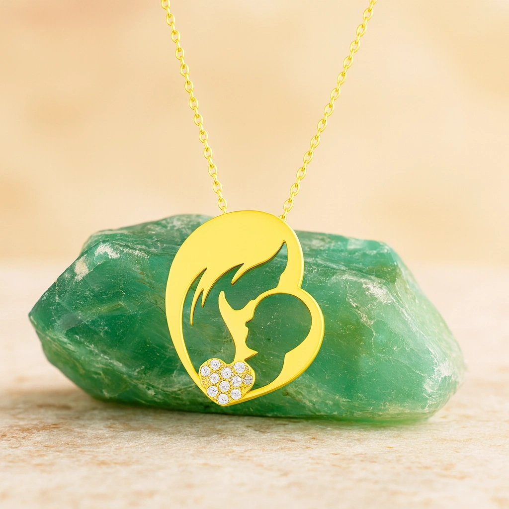 Anne ve bebeğin sevgi dolu bağını zarif bir silüetle yansıtan bu özel kolye, duygusal anlamı güçlü bir tasarım sunar. 14 ayar altının sıcak parıltısıyla birleşen anne-bebek figürü, hem şık hem de sentimental bir görünüm oluşturur. Hem yeni annelere hem de anlamlı bir hediye arayanlara hitap eden zarif bir parçadır.
