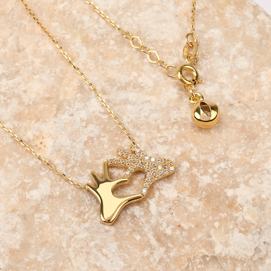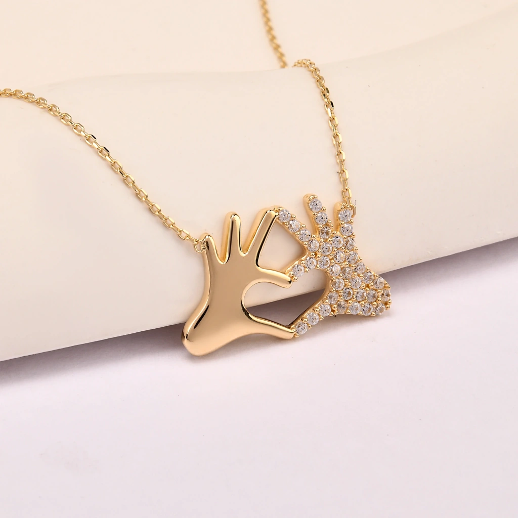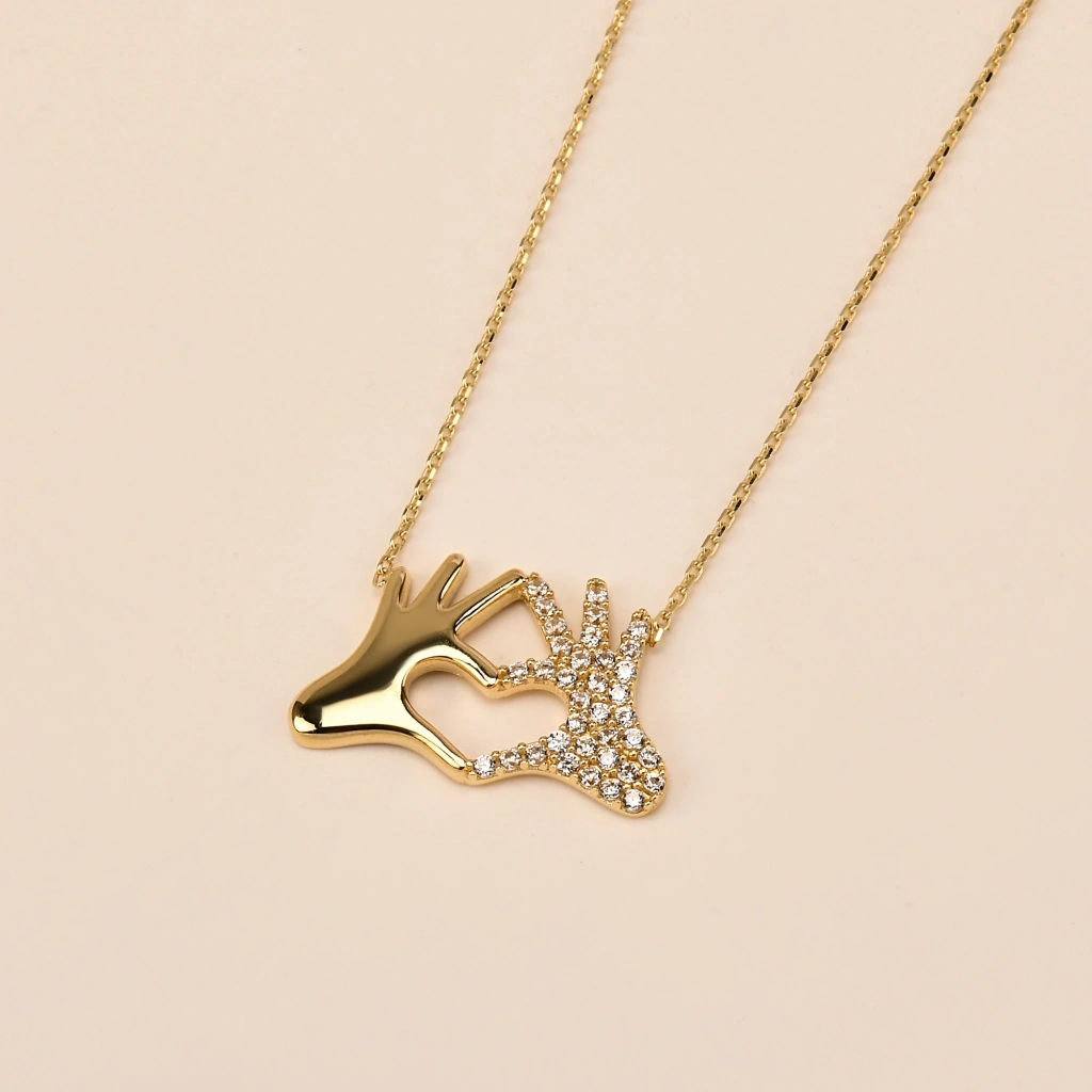 İki elin kalp formunu oluşturduğu bu zarif tasarım, sevgi, bağlılık ve sıcak duyguları simgeleyen anlamlı bir parçadır. Minimal ve modern çizgileriyle hem günlük kullanımda hem de özel anlarda şık bir görünüm sunar. 14 ayar altının parlak dokusuyla birleşen tasarım, sevdiklerinize duygusal bir hediye vermek isteyenler için mükemmel bir seçimdir.