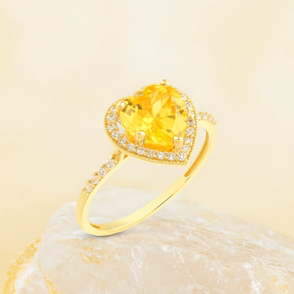 This elegant citrine ring symbolizes love, loyalty, and positive energy. Featuring a heart-cut citrine gemstone, this 14K gold ring is a meaningful and eye-catching choice for engagements, promise ceremonies, or special celebrations. Citrine, the birthstone for November, adds warmth and vibrancy to your style.