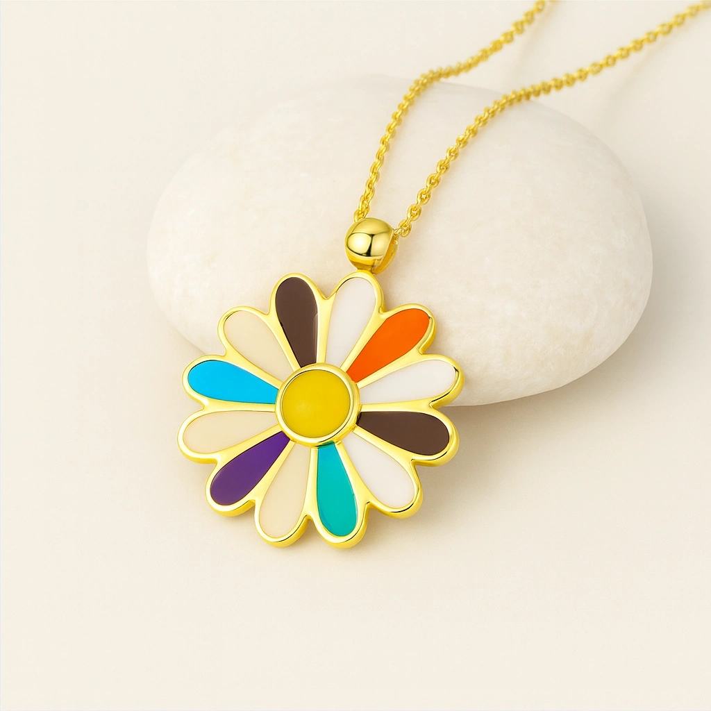 14K Gold Colorful Daisy Necklace – Elegant Design Reflecting the Joy of Spring