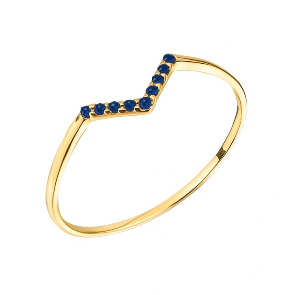 14K Gold Curved Sapphire Ring – Elegant and Meaningful Design
