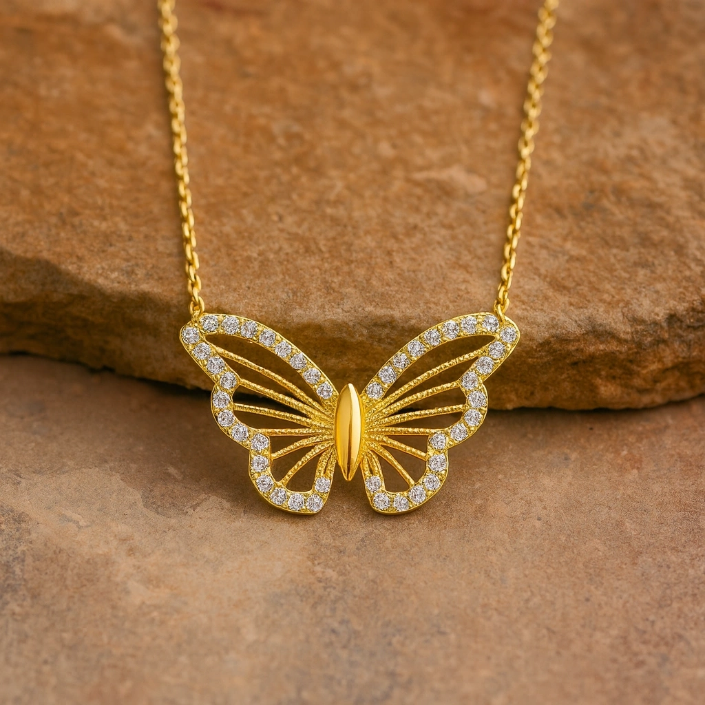 14K Gold Butterfly Necklace – Shimmering Symbol of Transformation and Elegance