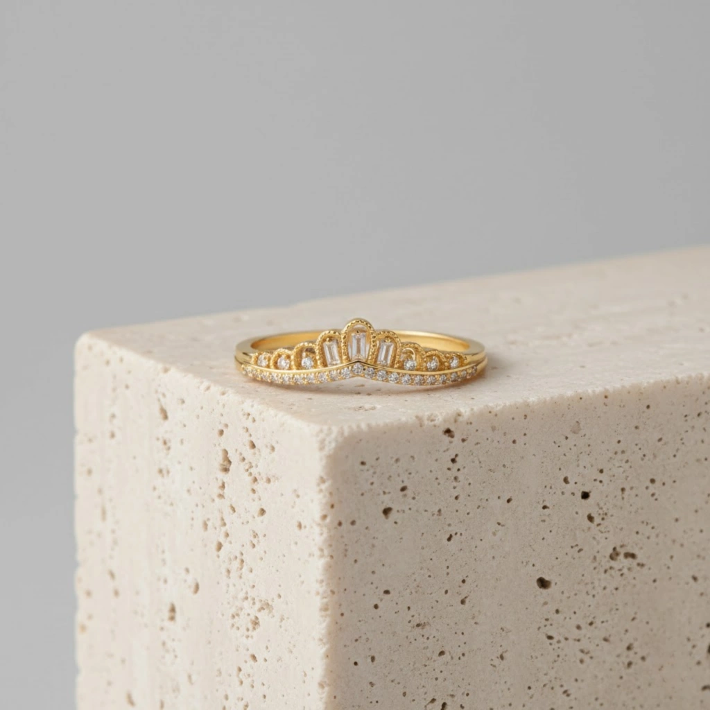 0.16 Carat Baguette Cut Diamond Crown Ring