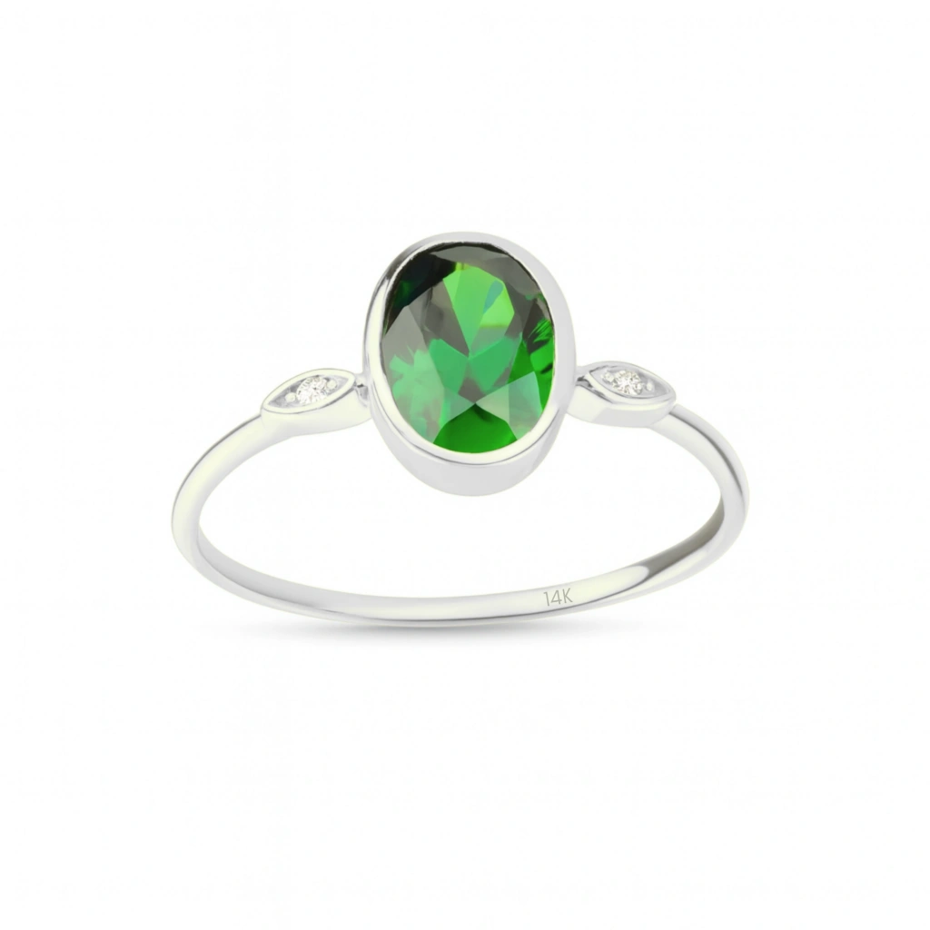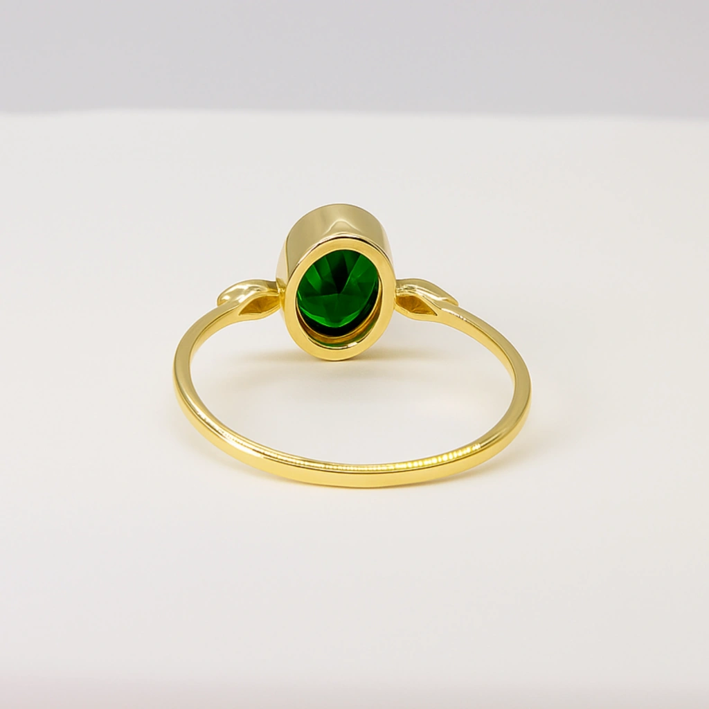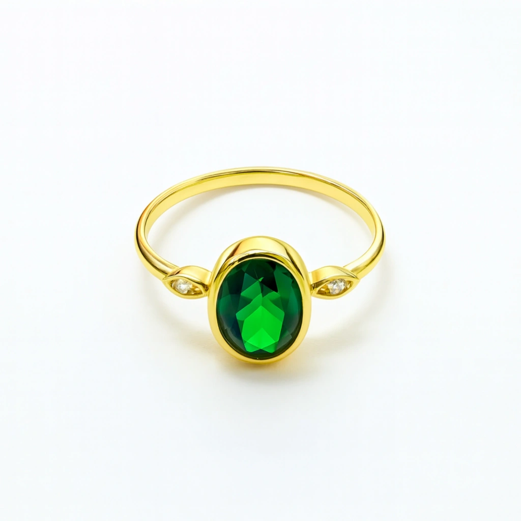 14 Ayar Altın Oval Kesim Zümrüt Yüzük