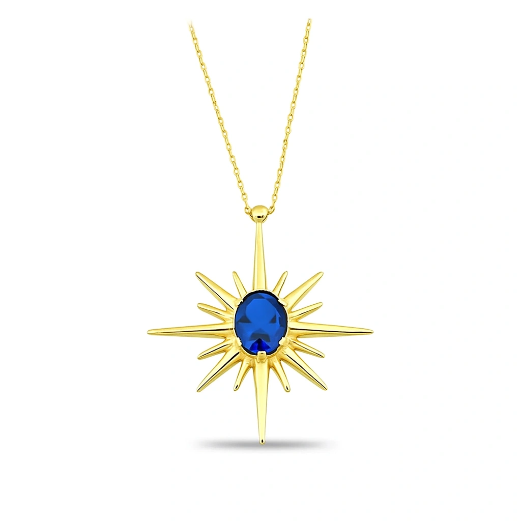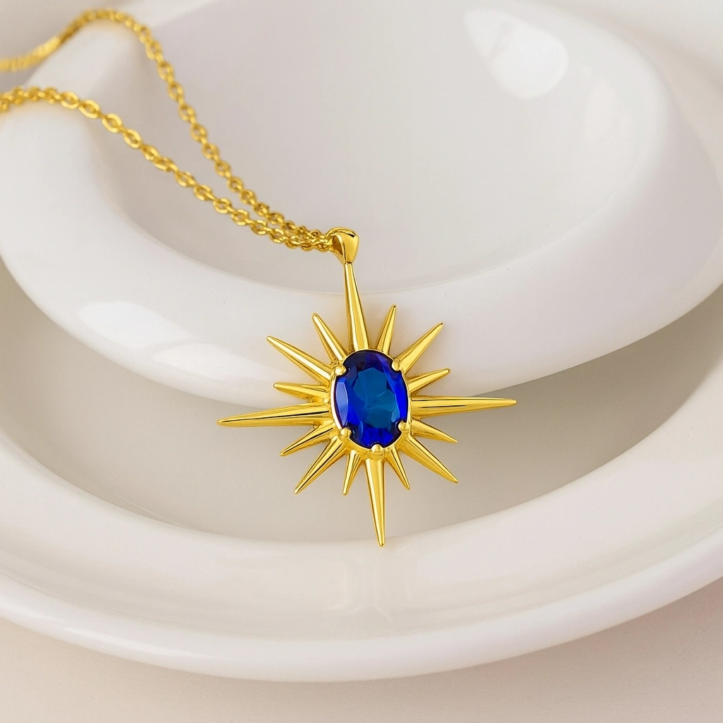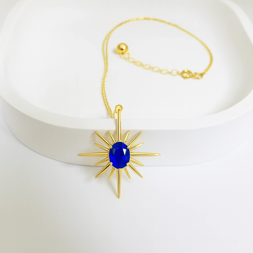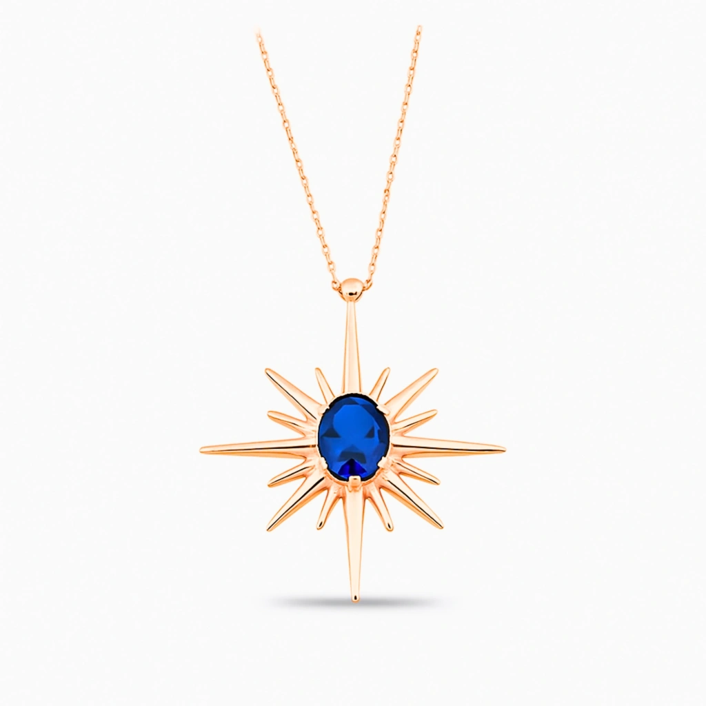 14K Gold North Star Sapphire Necklace – Symbol of Elegance and Guiding Light