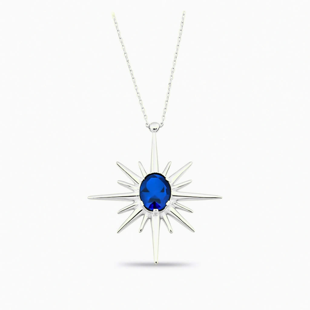 Design: North star motif pendant necklace with central sapphire, elegant and modern design